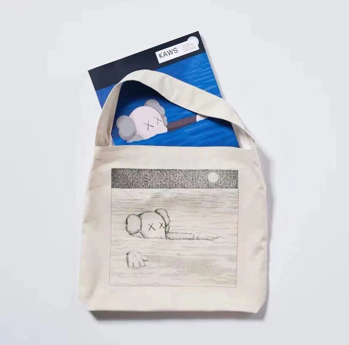 最值得一提的是,全新 KAWS x UNIQLO 联名系列还会有一本包含历年 KAWS 作品的实体画册,并在购买后附赠限量 15000 个的配套单肩布包。