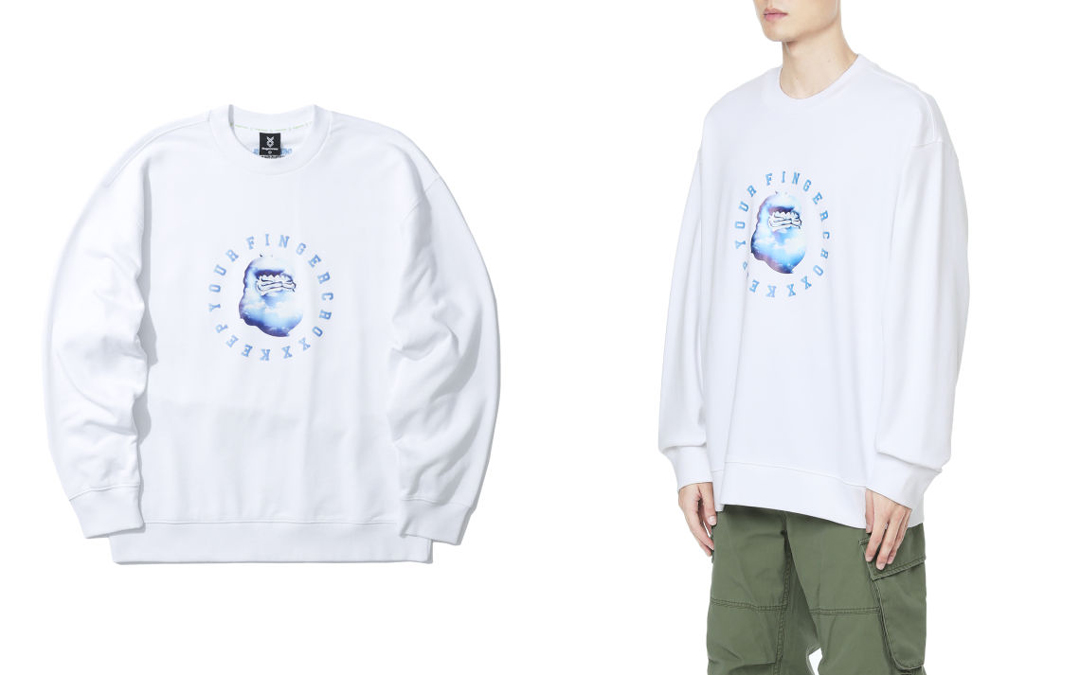 FINGERCROXX 的印花圆领卫衣,不仅穿起来轻盈凉爽,在已经到来的秋季上身更是个不错的选择。