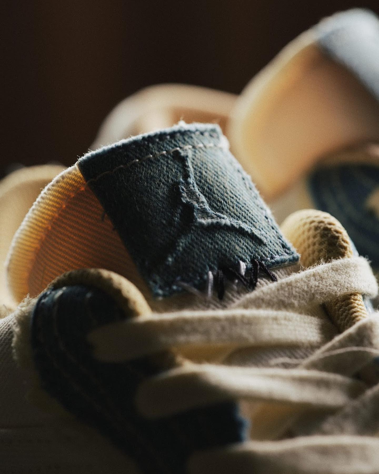 整双鞋灵感来源于日本刺绣工艺,水洗丹宁面料和皮革打造,缝线处的毛边设计,对于喜欢破坏风的朋友,十分适合。