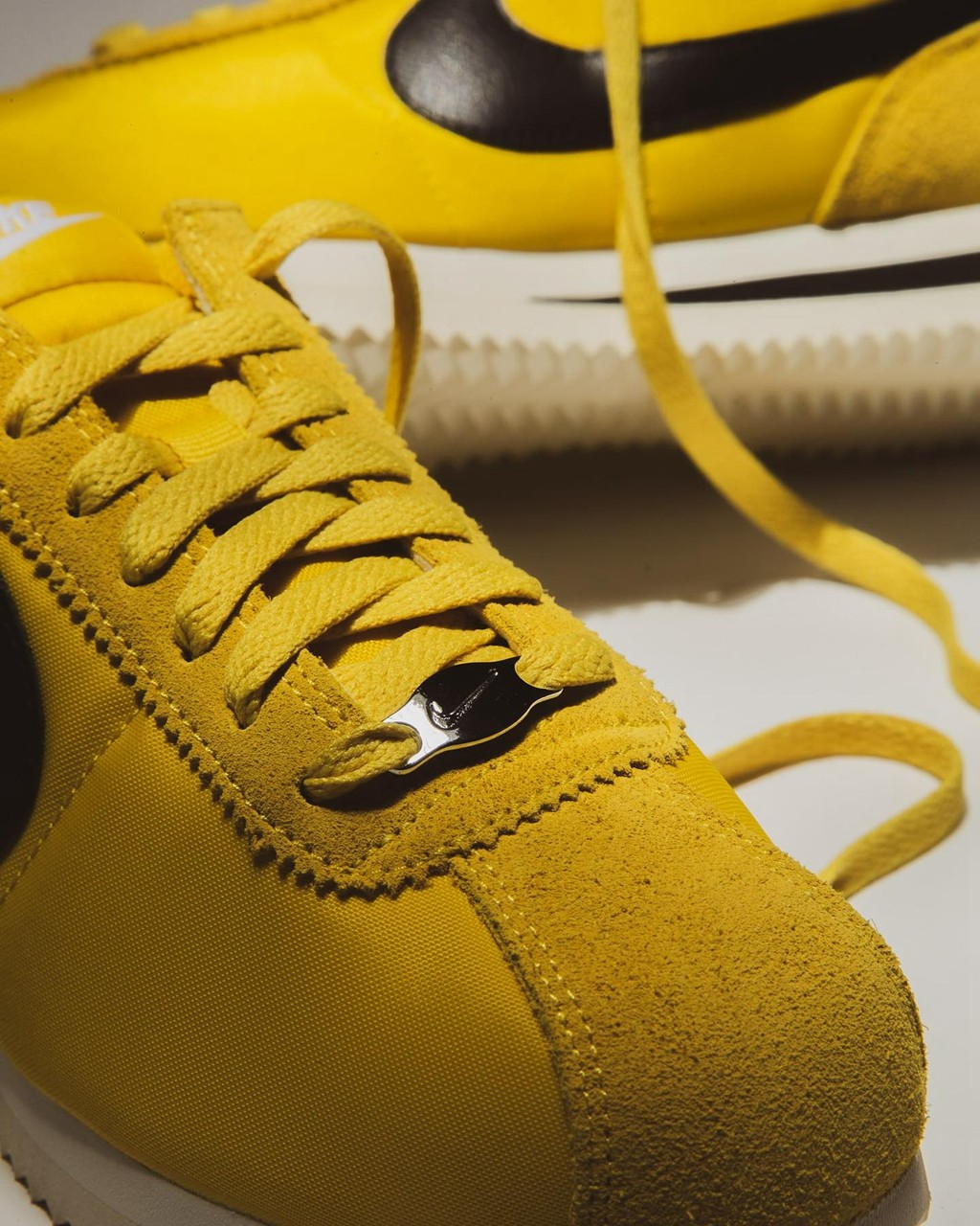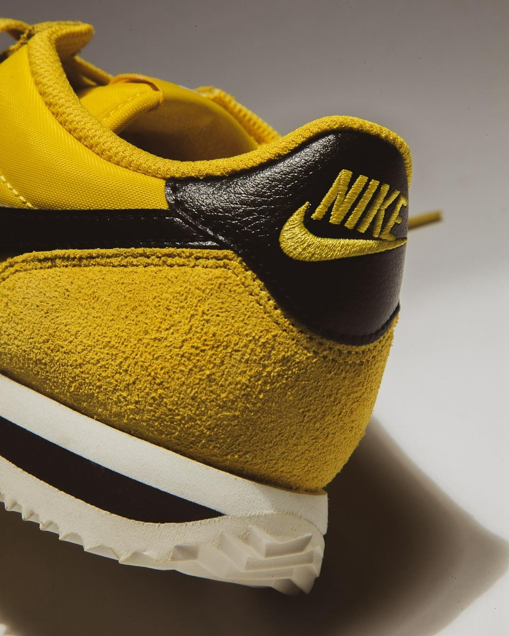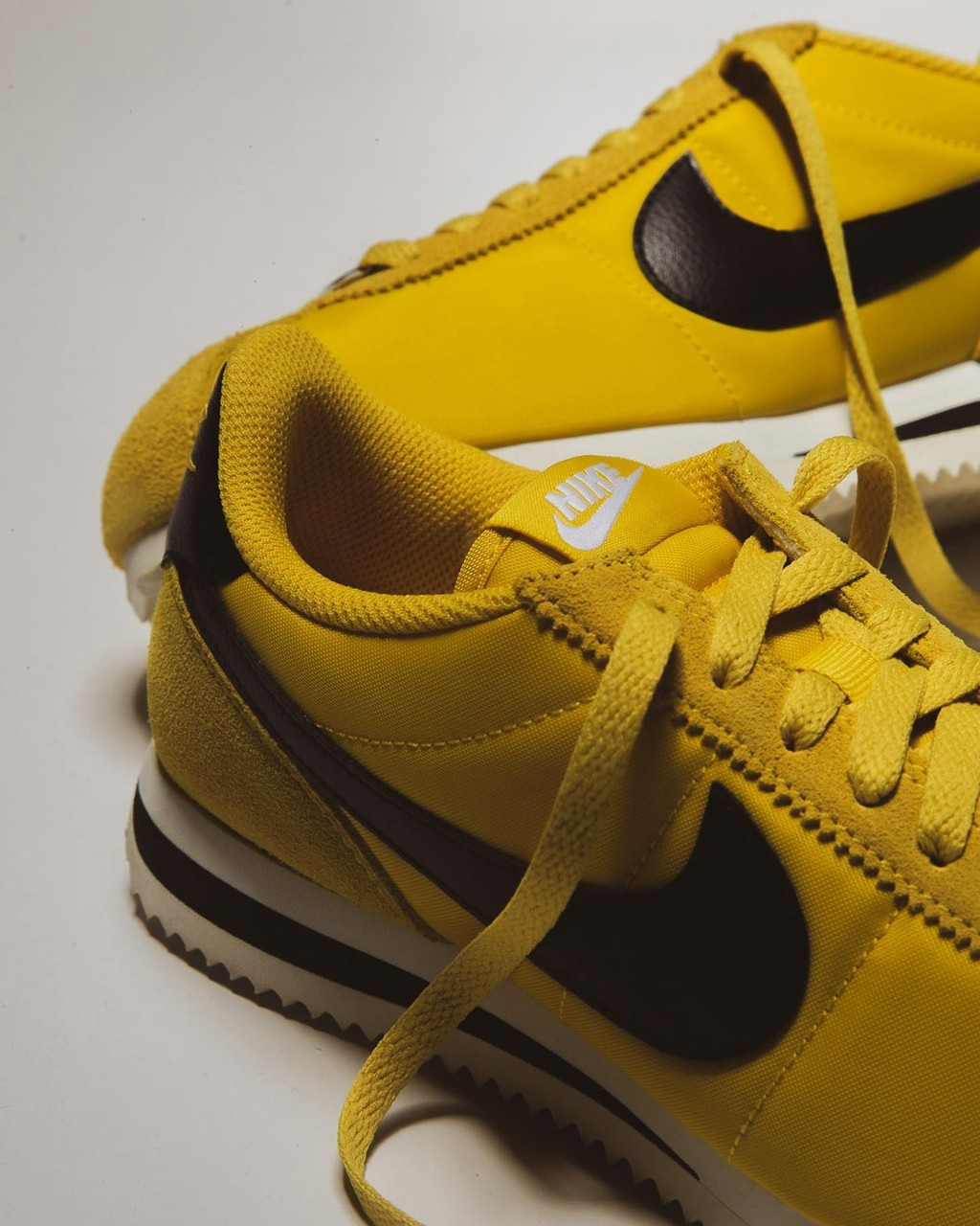 这时就体现出了平替球鞋的重要性,比如最近释出实物美图的黑黄配色 Nike Cortez。