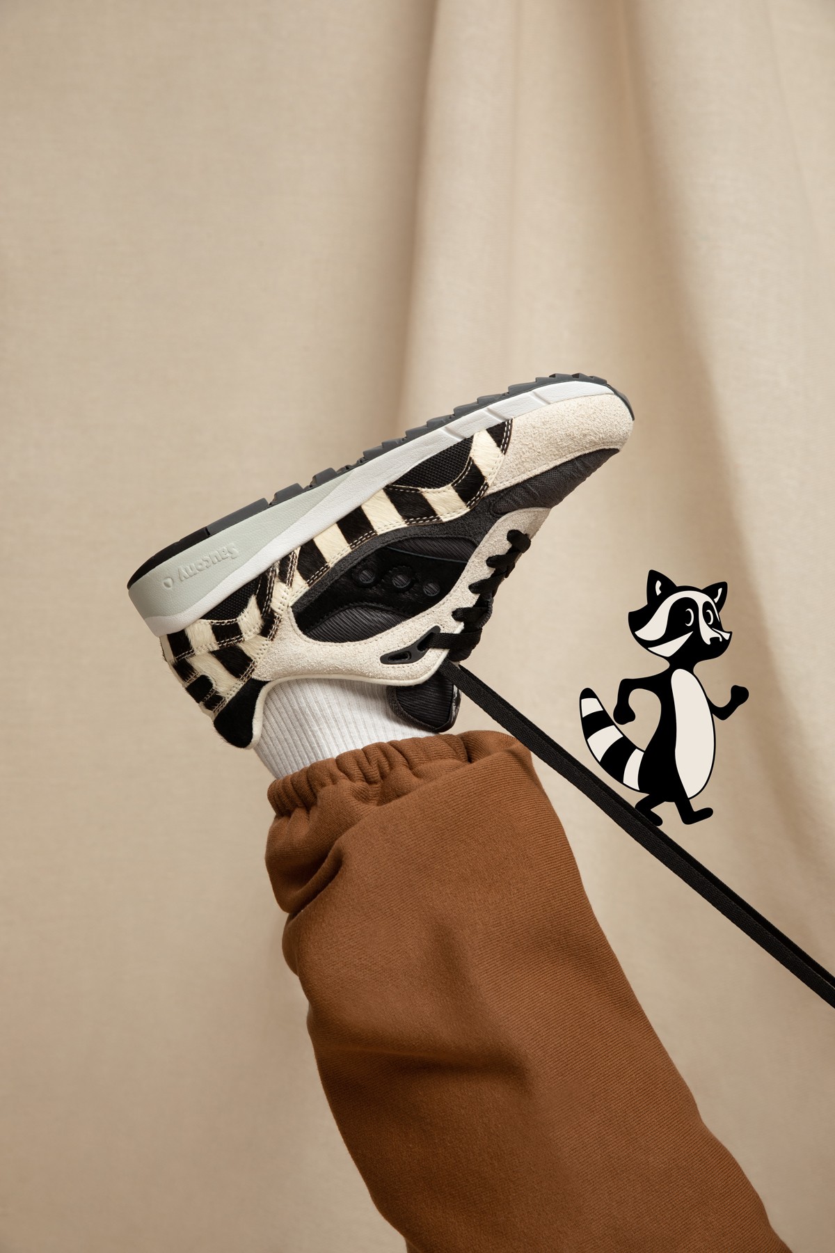 全新 Saucony Shadow 6000 被命名为「Good Manner Racoon」,其设计灵感源自于品牌发源地 Kutztown 小镇的环保吉祥物小浣熊,视觉效果格外俏皮。