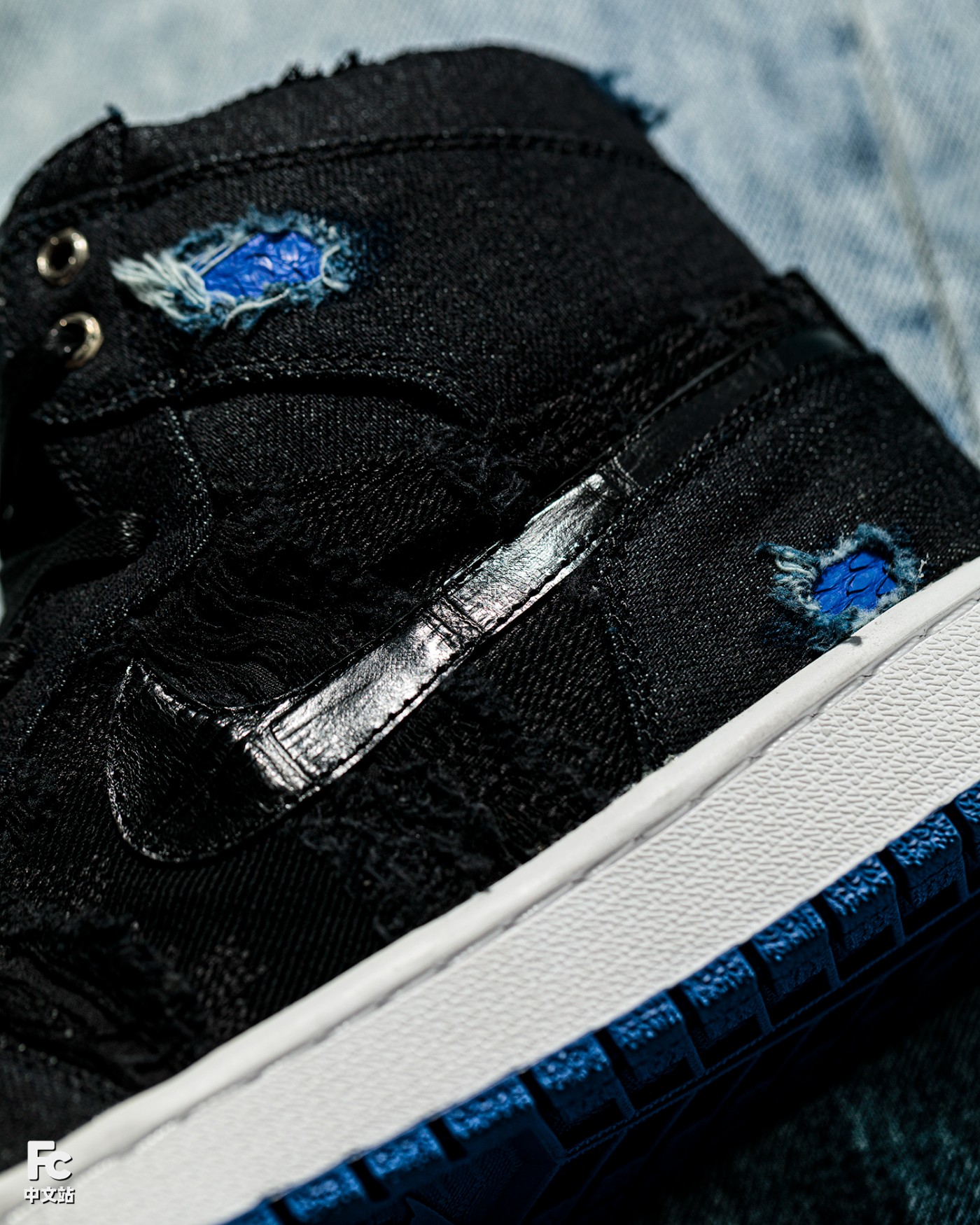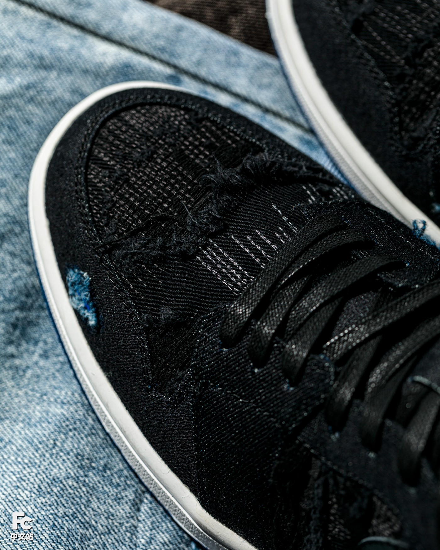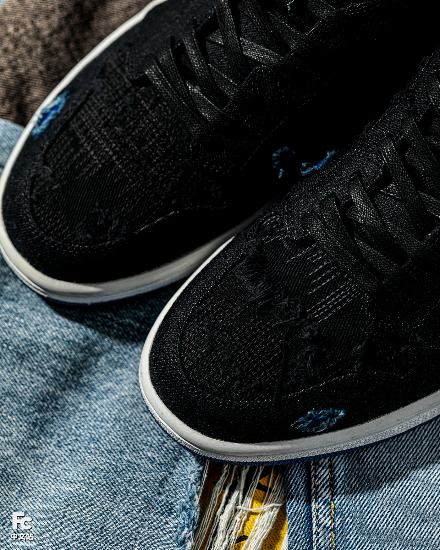 整体以暗黑风格呈现,配合黑丹宁鞋面,低调又不失狂野气质。