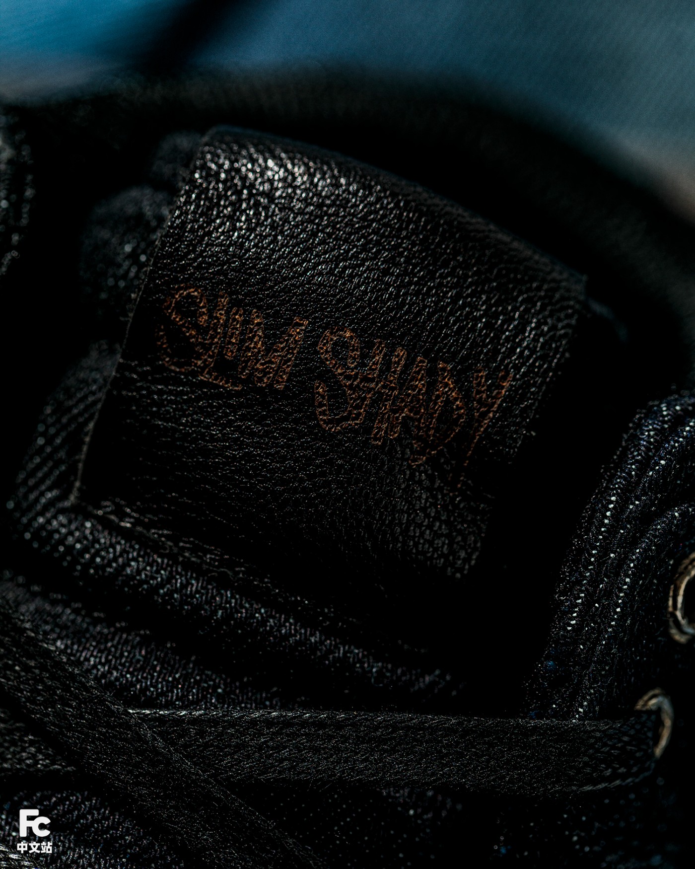 鞋舌标签则是由高级皮质打造,并刻有 Slim Shady 手写体字样,以致敬这位说唱界的传奇巨星。