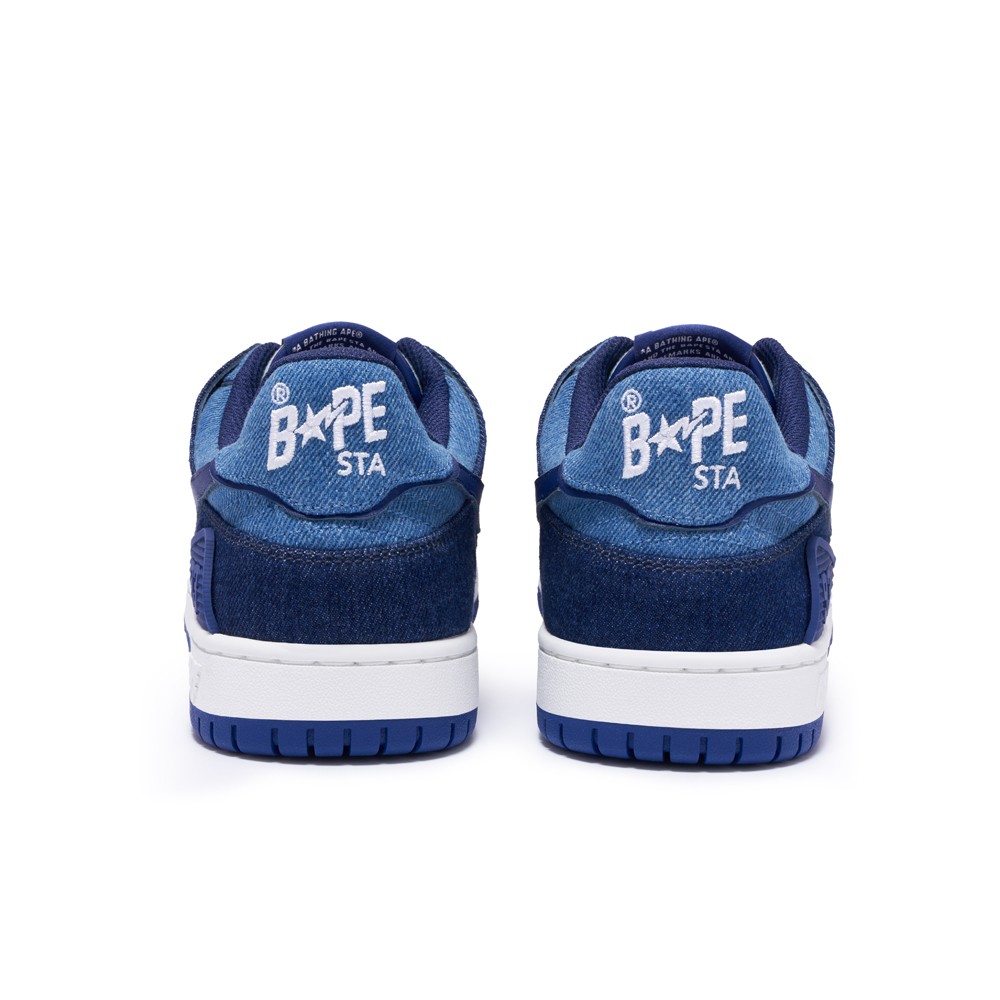 延续 BAPE® SK8 STA 经典轮廓,使用酷黑、清爽靛蓝两款丹宁配色覆盖于鞋面。