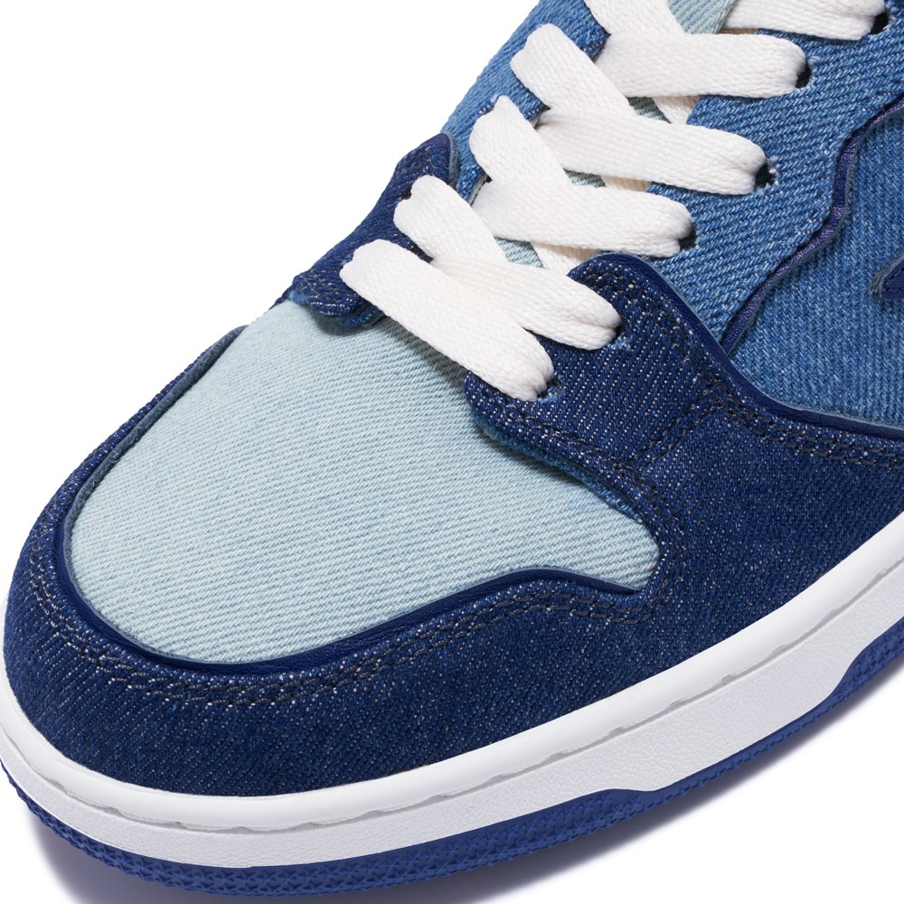 不只是全牛仔布材质覆盖,鞋侧 Logo 依然有皮革加持,进一步丰富鞋面质感。