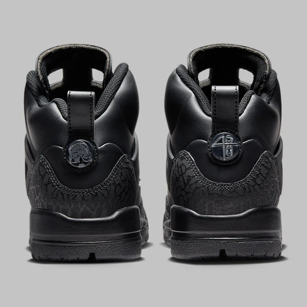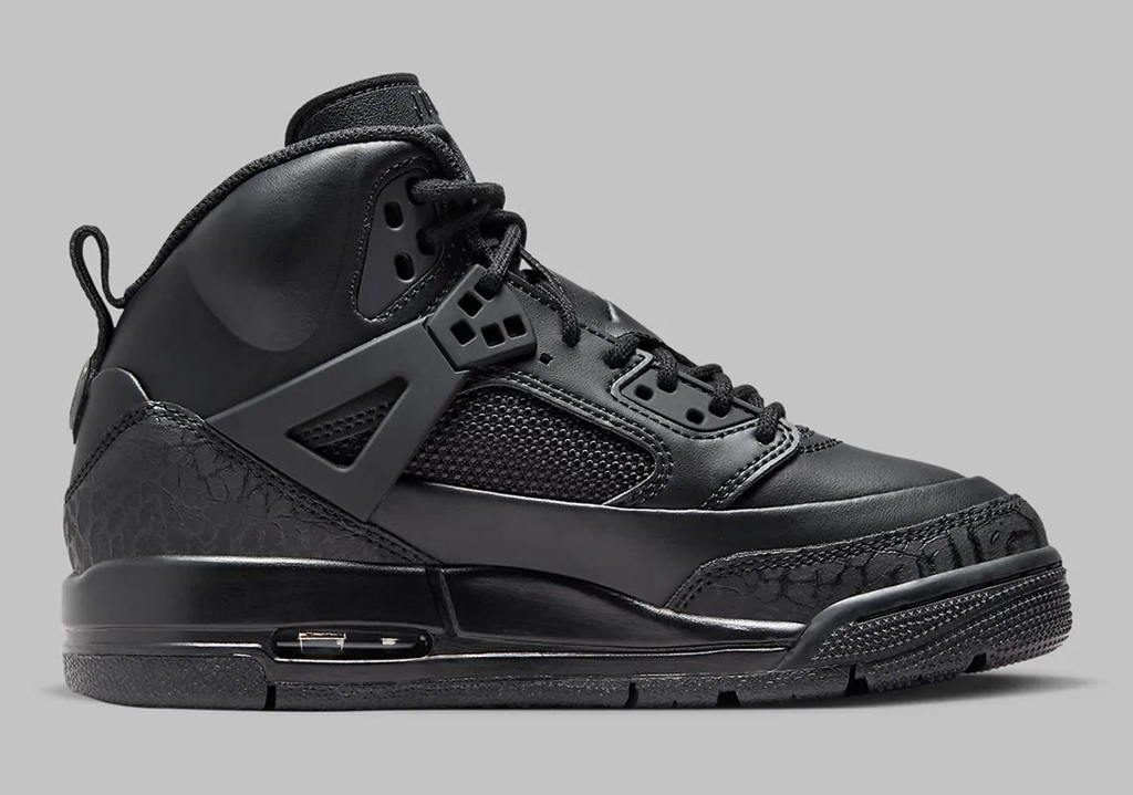 一双 Jordan Spizike “Black Cat” 迎来官图,采用纯黑色覆盖整个鞋面。