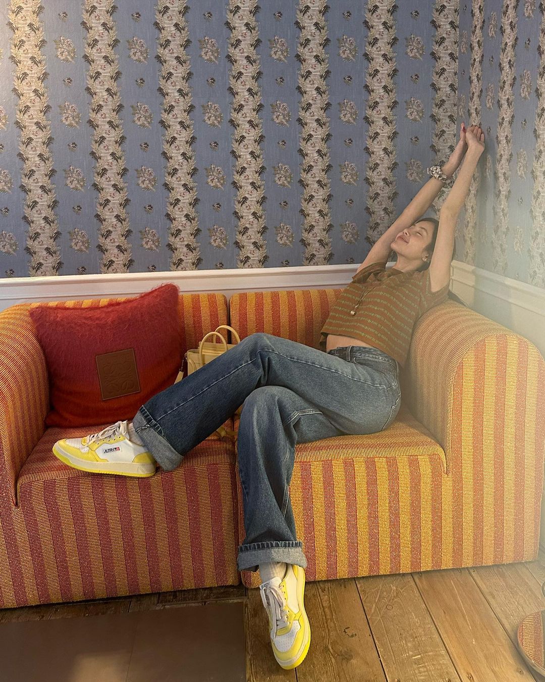 不只是 Jennie 在穿,另一位成员 Jisoo 也频频晒出这款鞋,并且是同款配色。