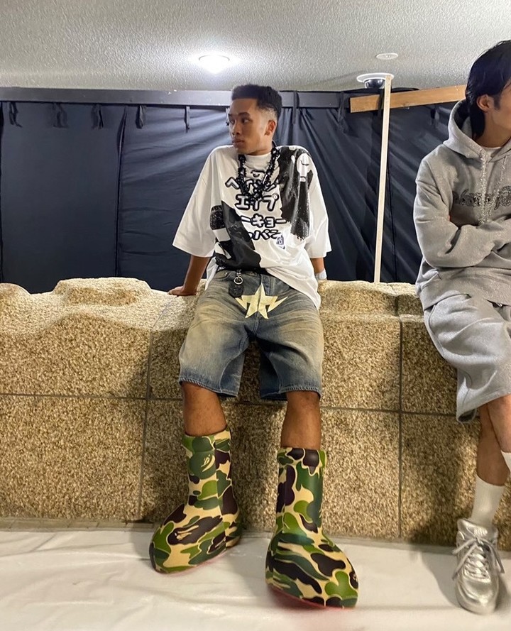 今年作为 BAPE®️ 三十周年纪念,双方将 BAPE®️ 标志性迷彩涂装置于大红靴造型上。