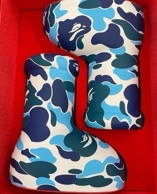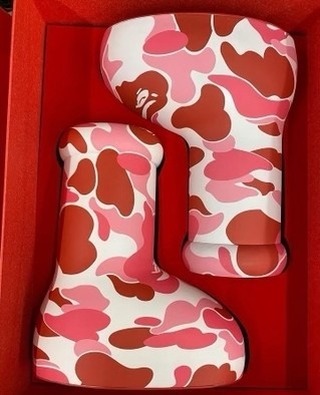 作为当下热门的鞋款之一,MSCHF 大红靴的造型已经深入人心,这波再加上 BAPE®️ 的迷彩涂装,可以预测到在欧美地区必定会是不少潮人的上脚选择。
