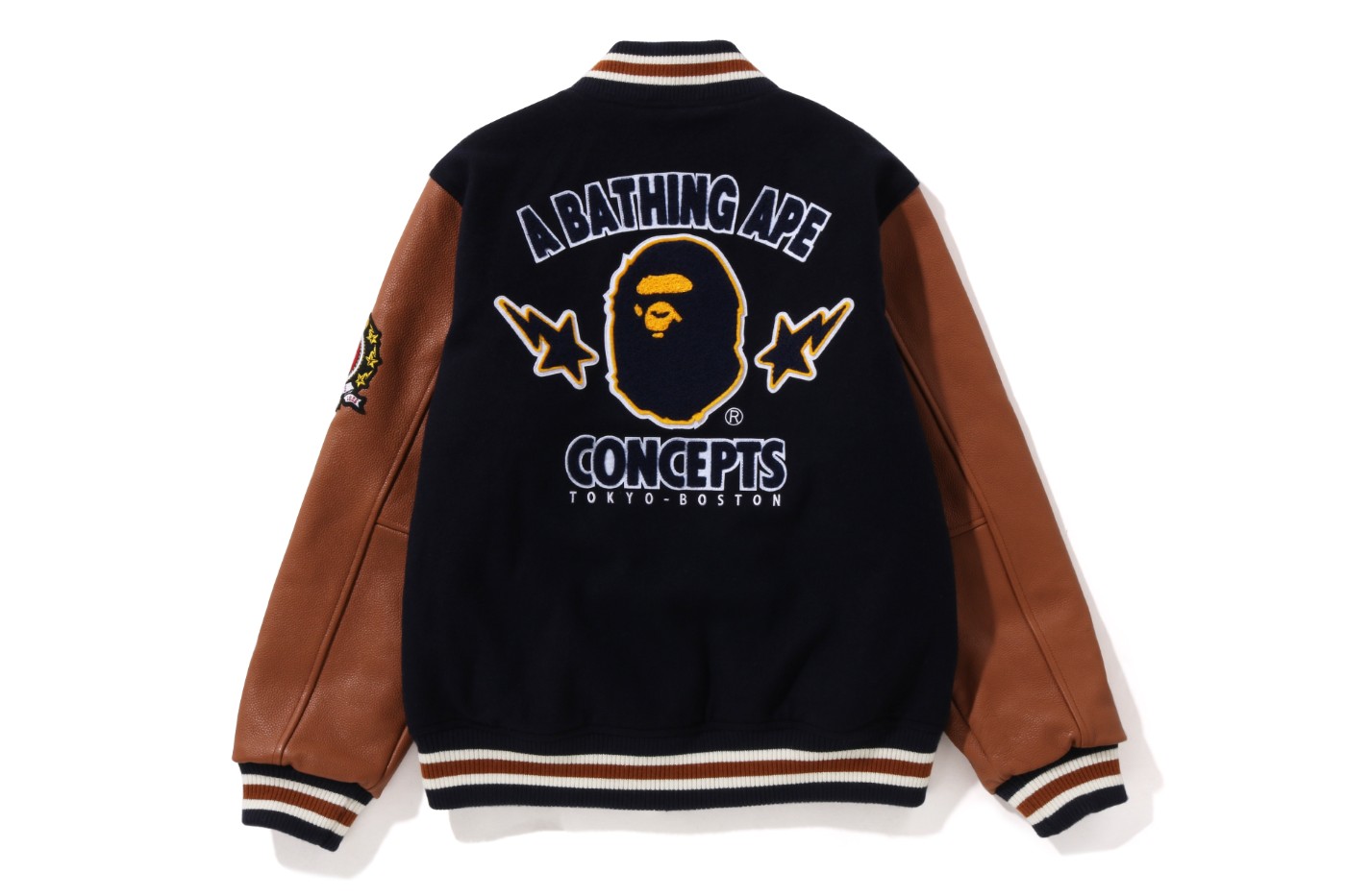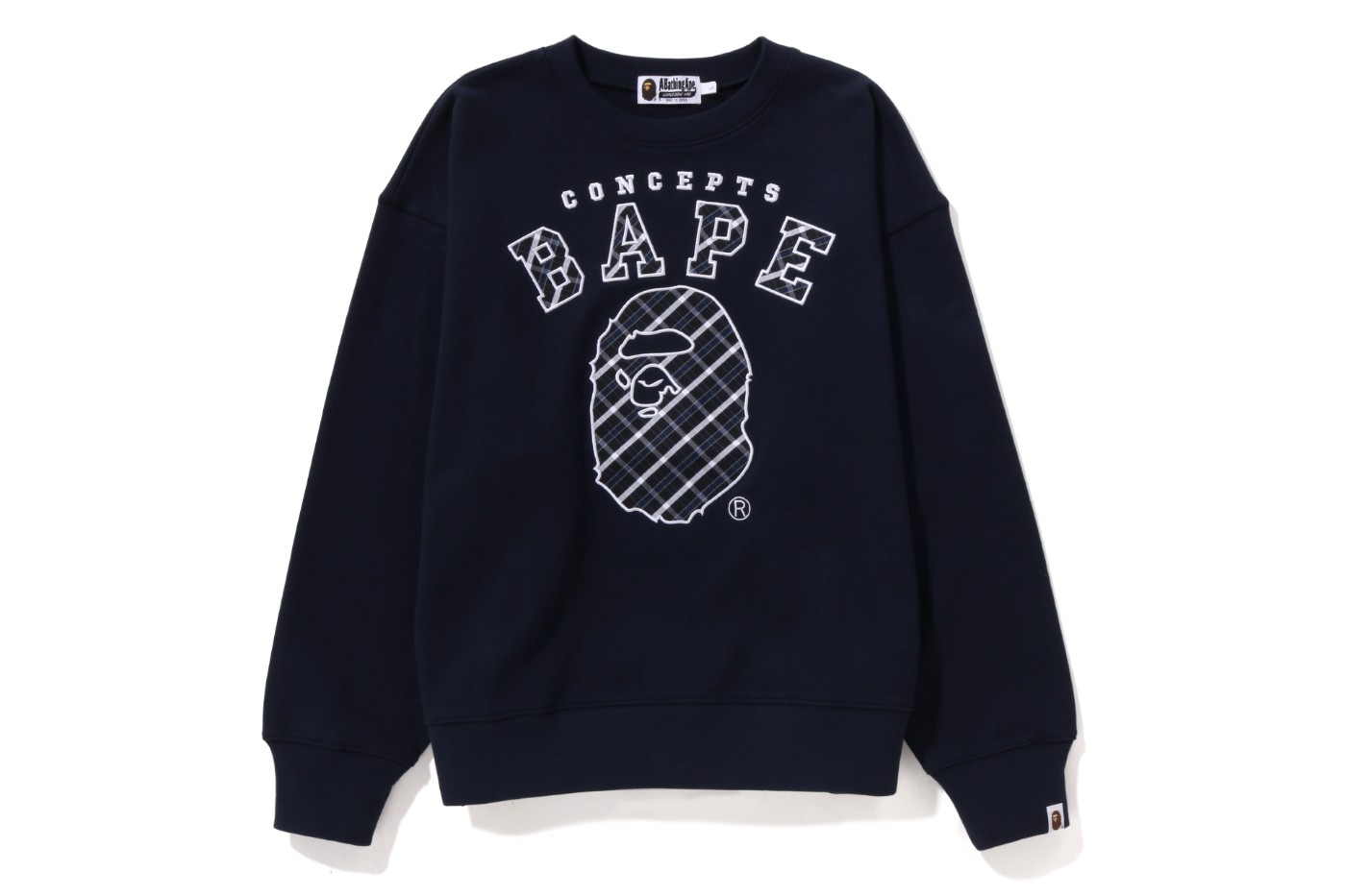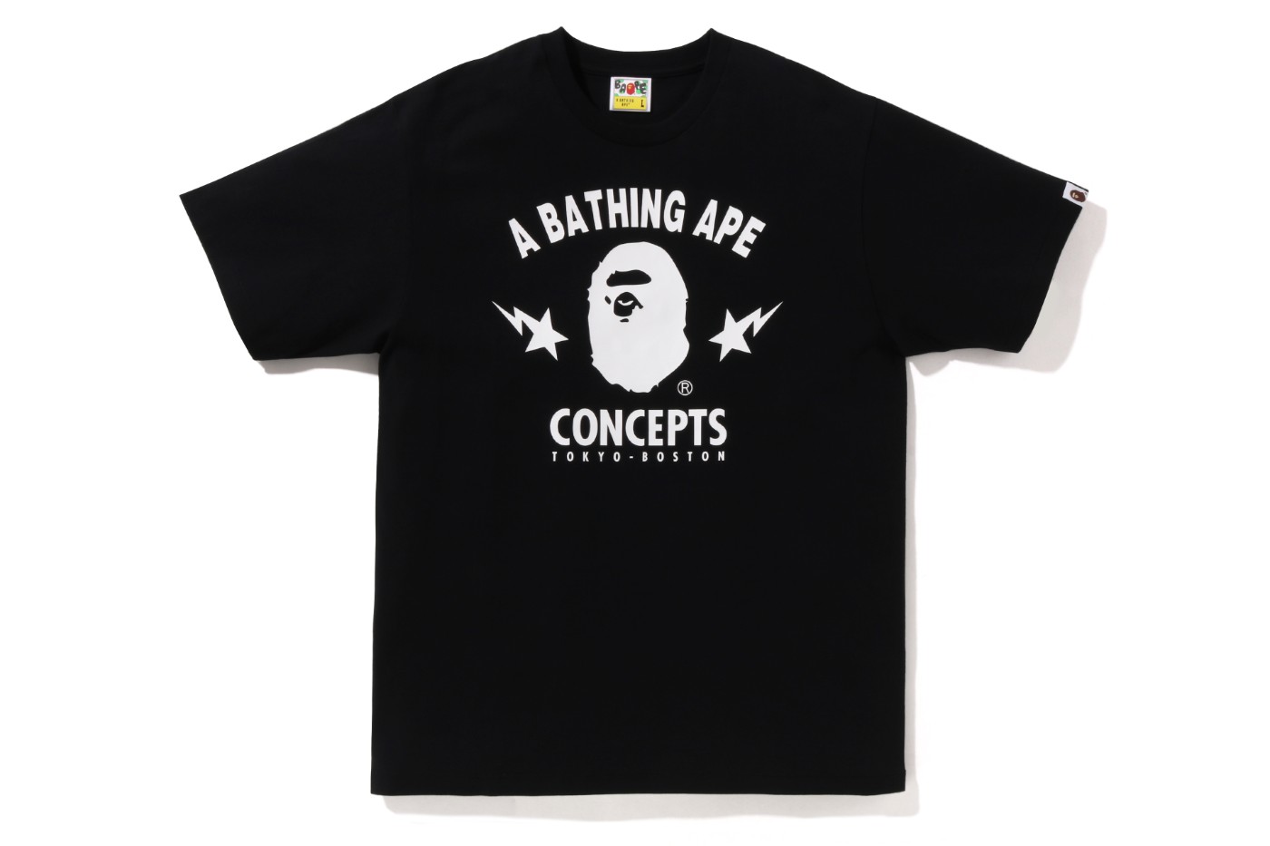 背面印有 BAPE® 标志性猿人 Logo 和 CONCEPTS 字样,彰显联名身份。