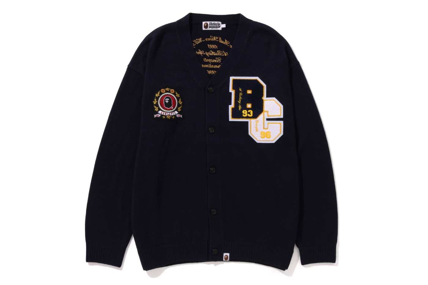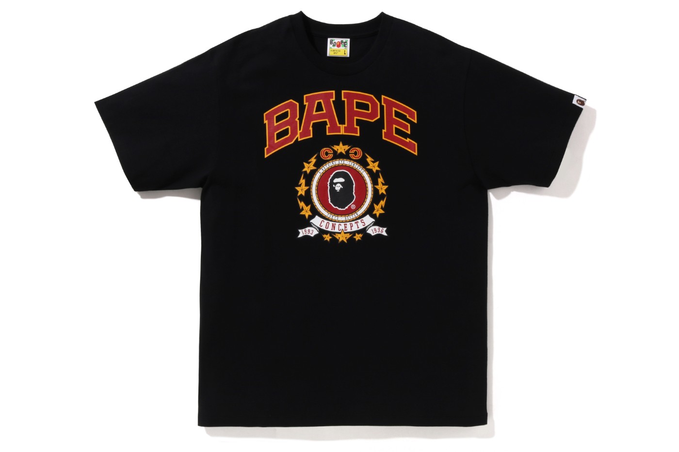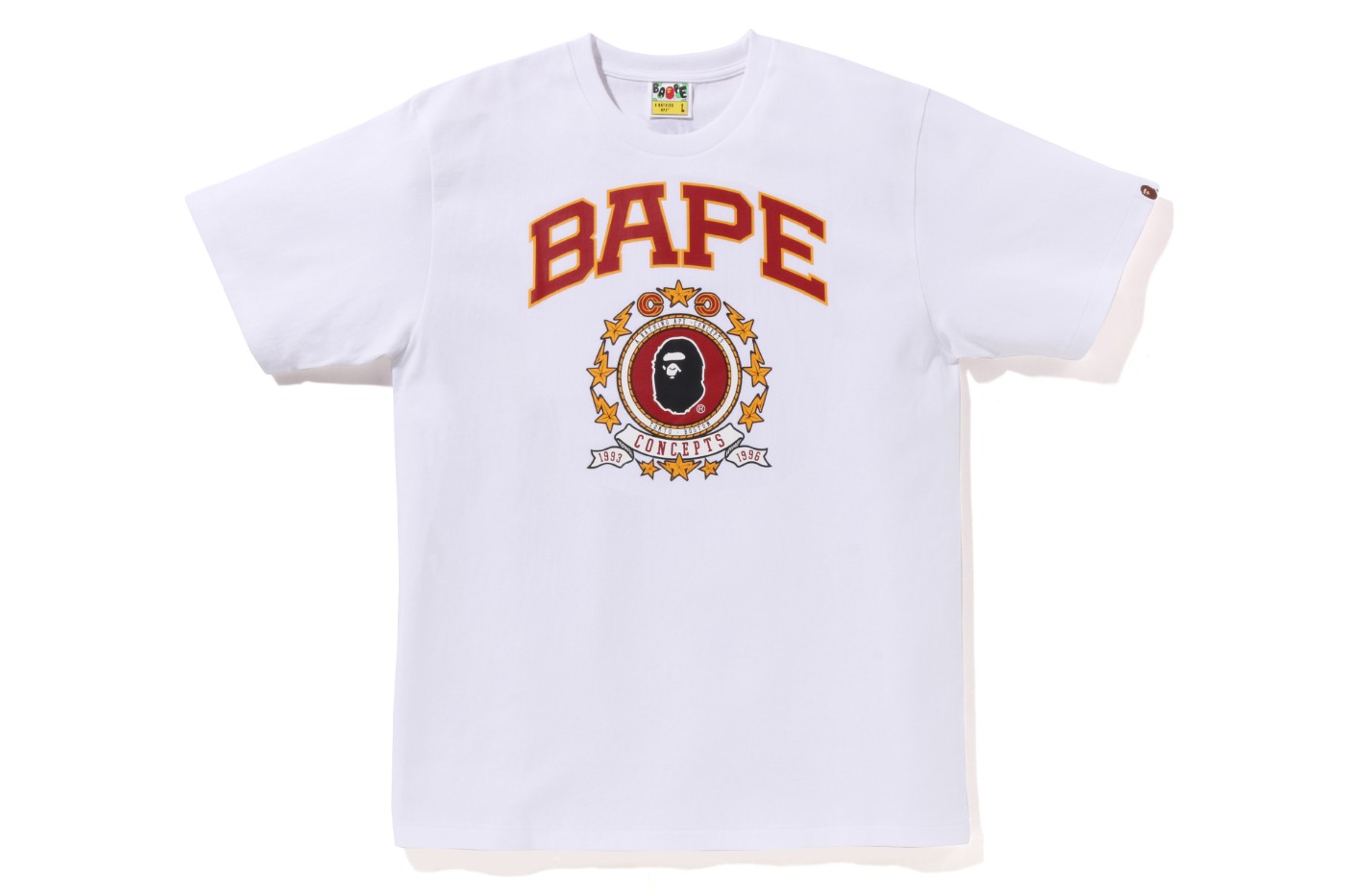 服饰前面印有经典的 BAPE® 和 CONCEPTS 字母,并在上面带有象征双方成立年份的「1993」和「1996」字样。