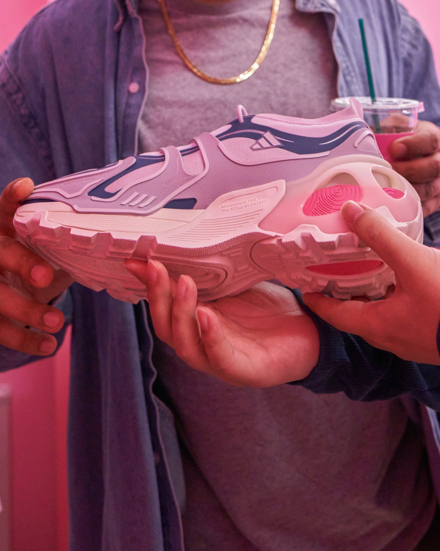 现场以粉色多巴胺氛围包裹,从视觉、听觉、触觉以及嗅觉多种感官,诠释 adidas Sportswear Z.N.E. 系列的治愈主题。