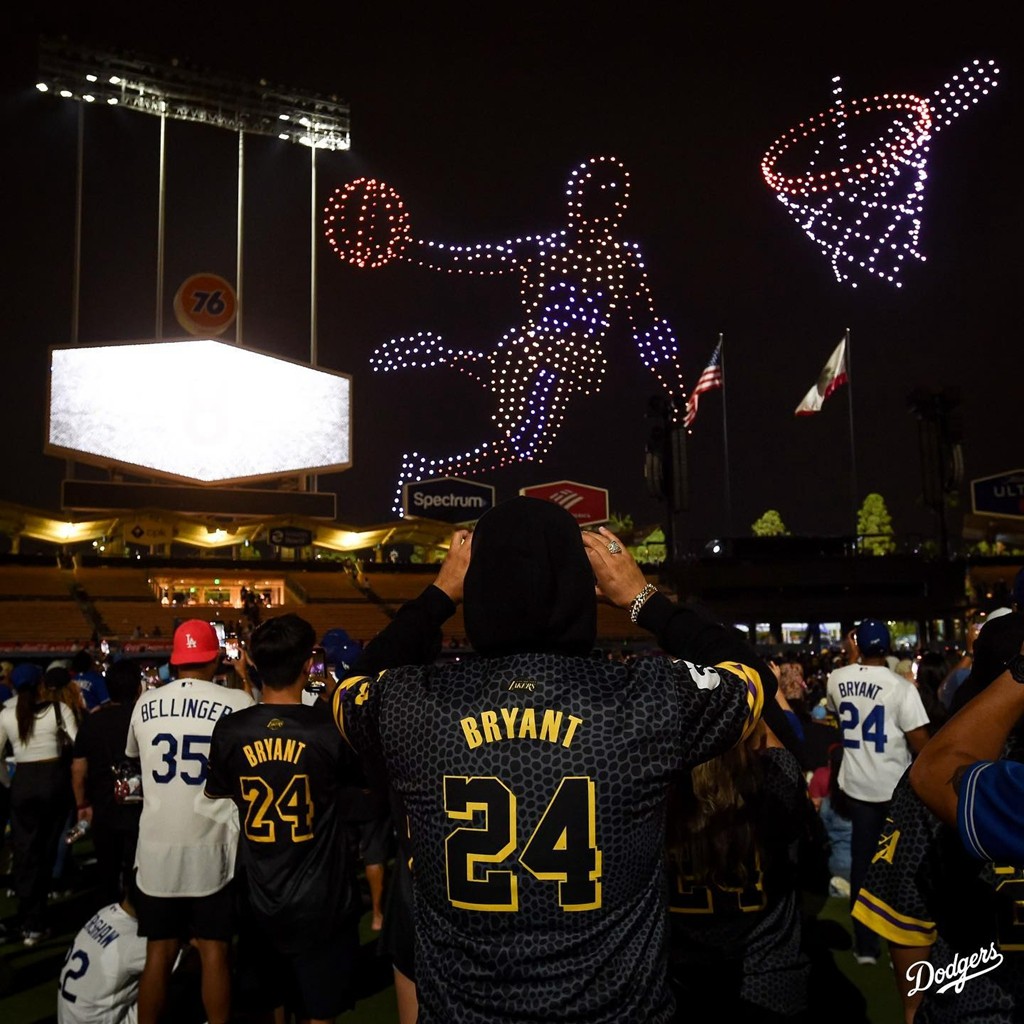 在现场,道奇队通过操控数百架无人机来组成各种科比相关元素,在夜幕的衬托下极为震撼。