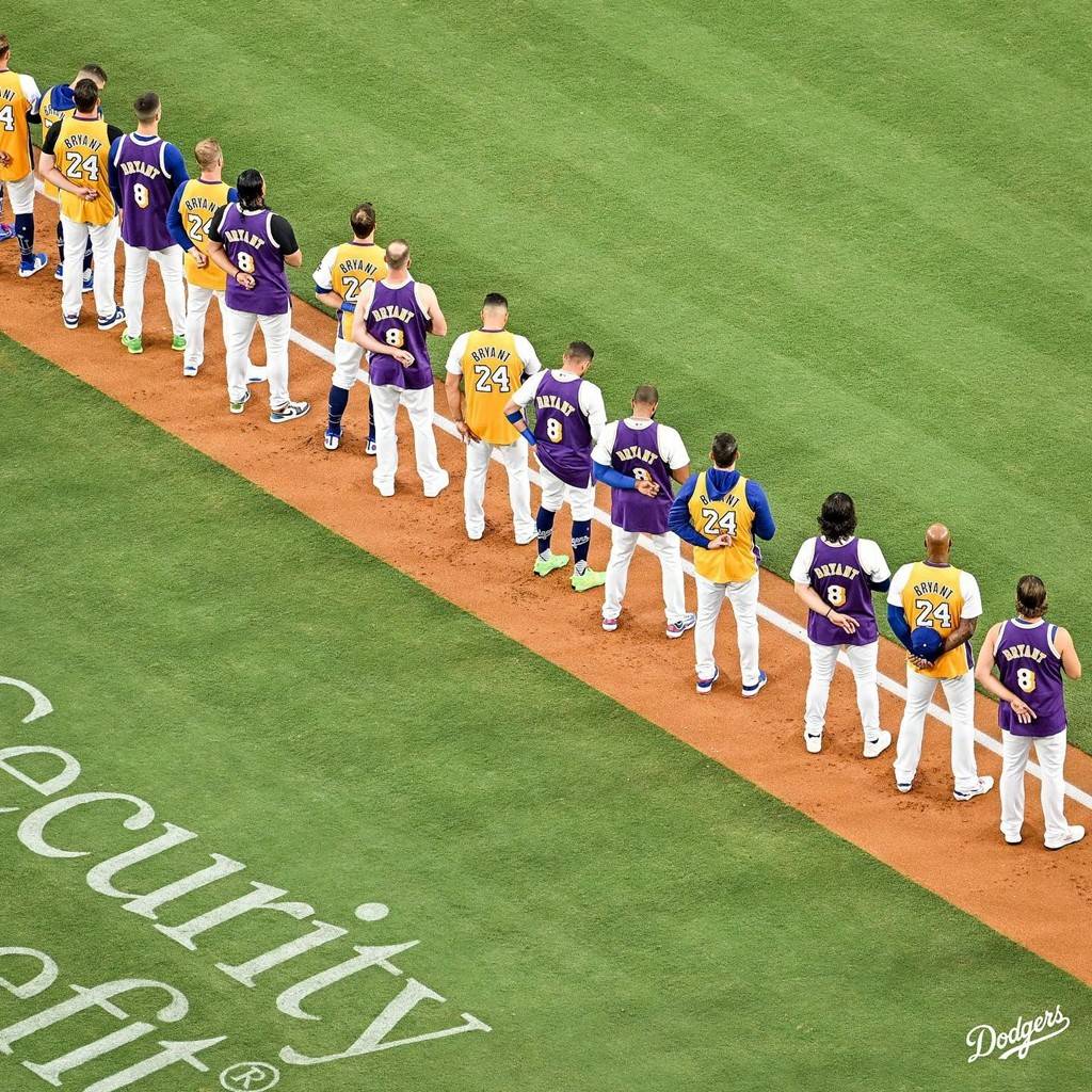 同时,道奇队球员在赛前仪式的时候,也集体换上科比球衣,向这位传奇表示敬意。
