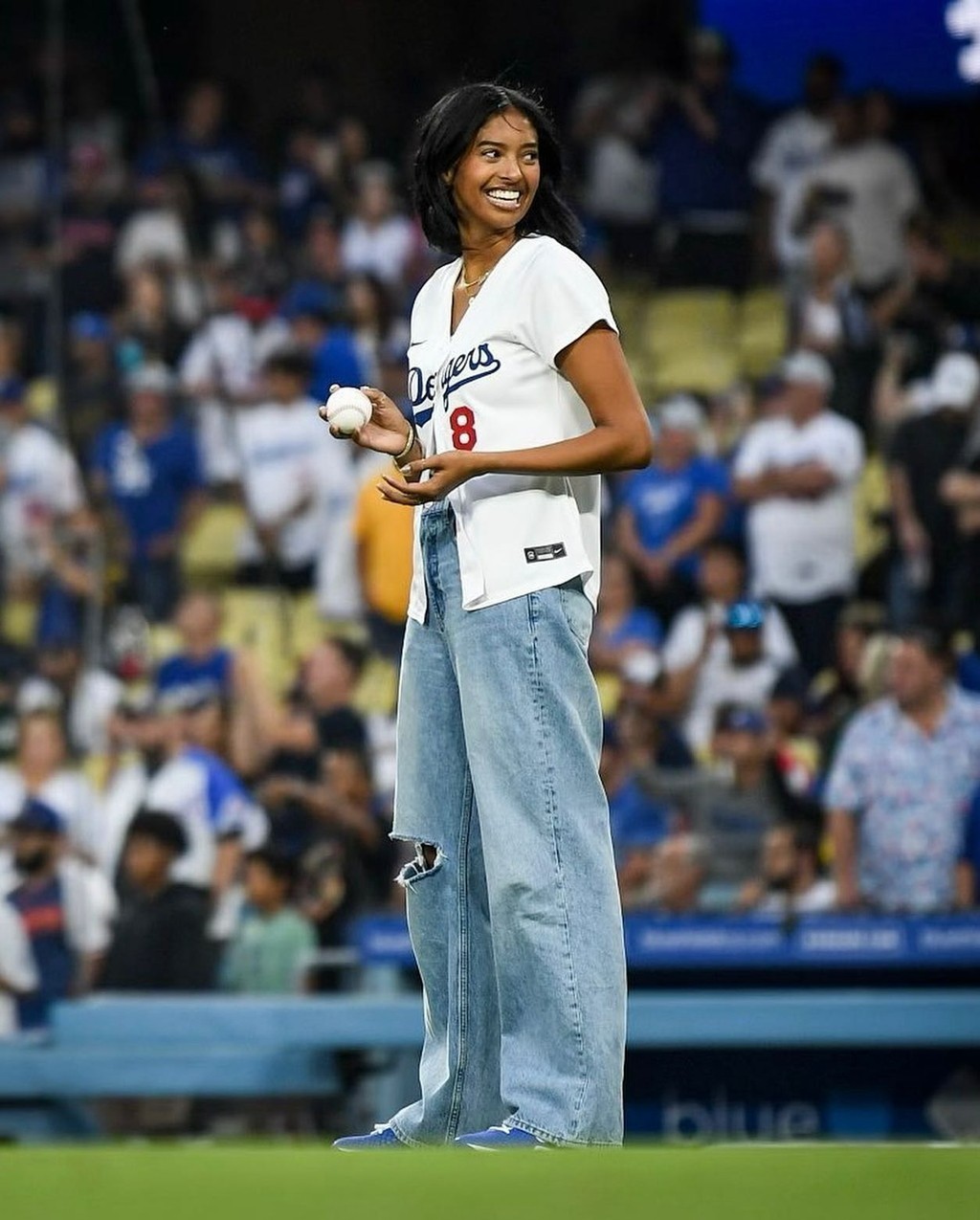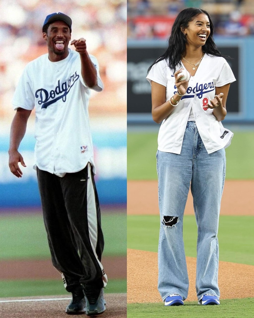可以看到,娜塔莉亚身上穿的 8 号球衣,正是科比年轻时为道奇队开球的同款球衣,令无数科比粉丝泪目。