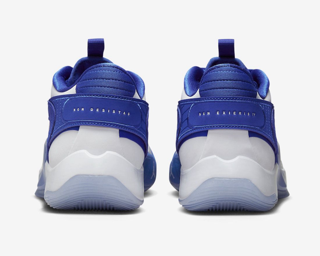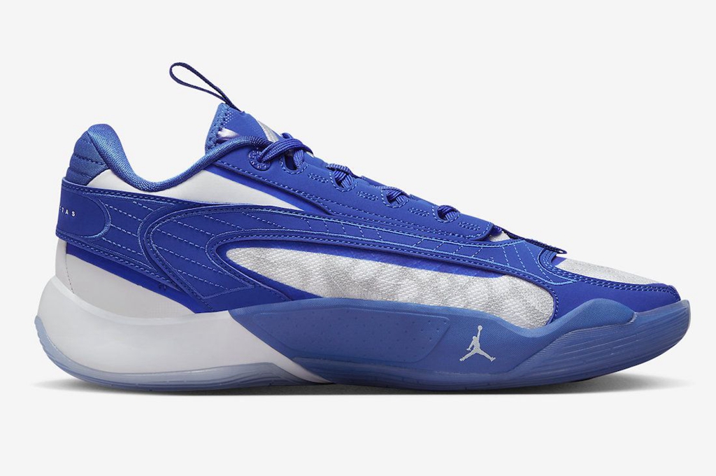 比如最近刚释出的 Jordan Luka 2 皇家蓝,通过白蓝色鞋身来呼应独行侠队的球衣。
