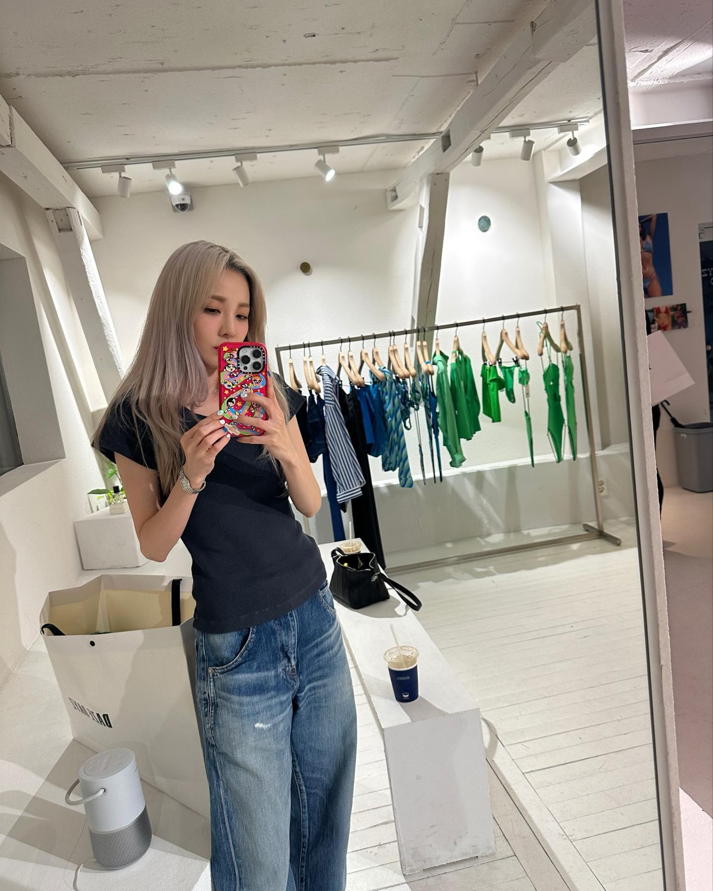 除此之外脚上穿的是 Dr. Martens 马丁靴,不管是穿短裤还是长裤都能够显腿长。