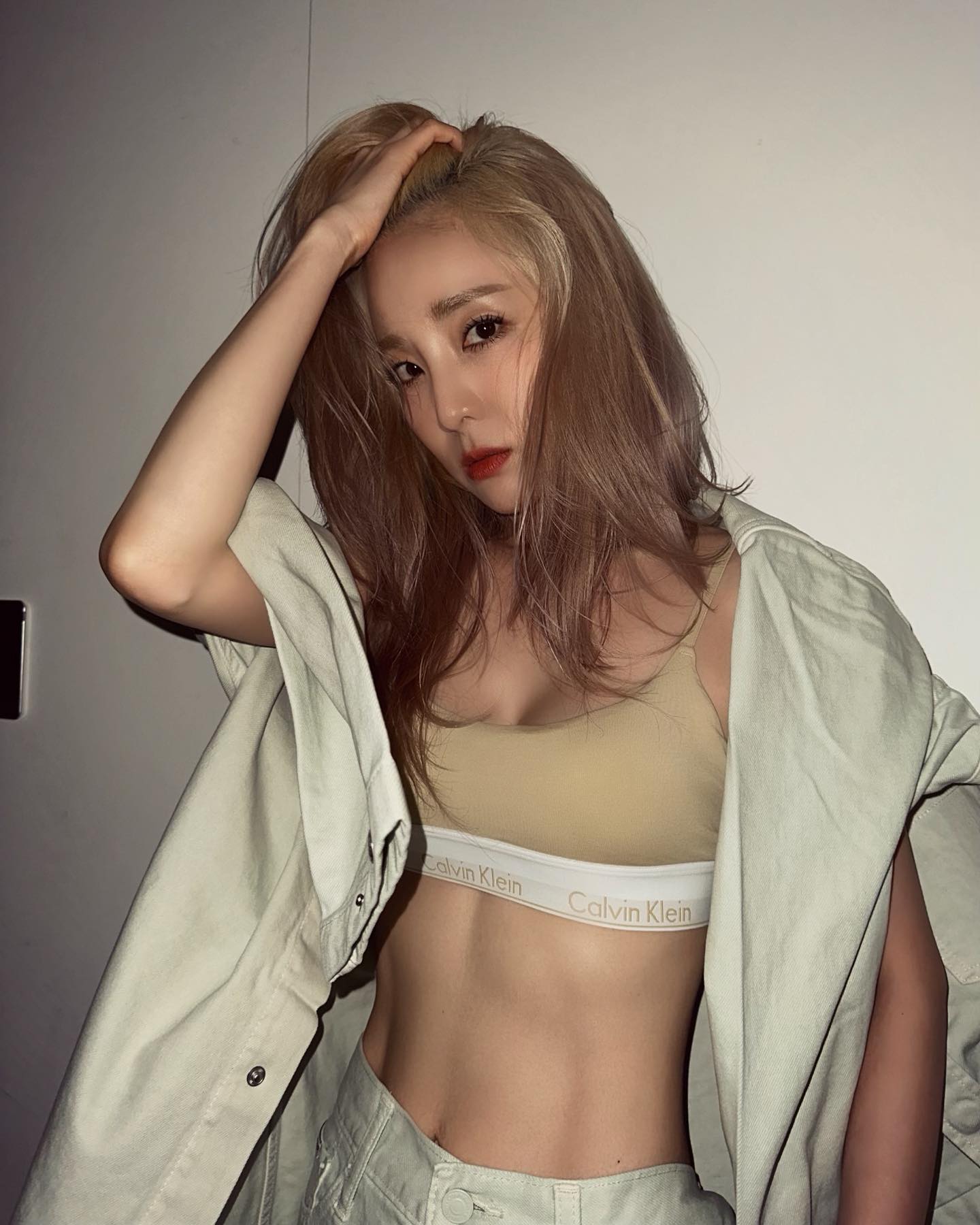 除了鞋,我们的朴山多拉还在镜中展示自己的腹肌,大秀好身材。