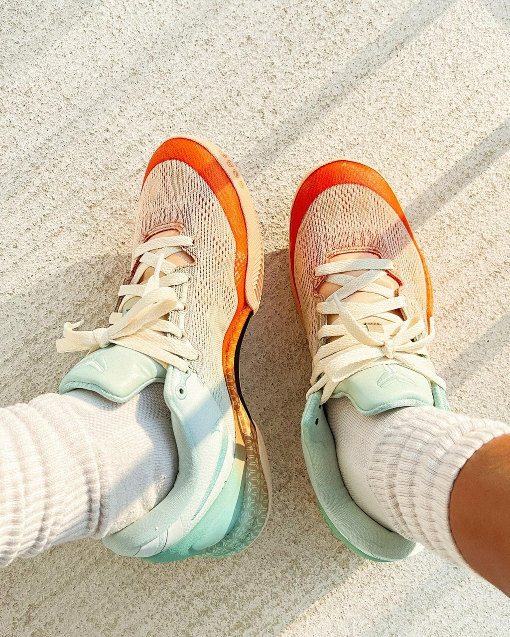 通过两种颜色的染料对鞋面进行浸泡,形成夏日氛围十足的橙、绿渐变,带来和原鞋完全不同的颜值表现。