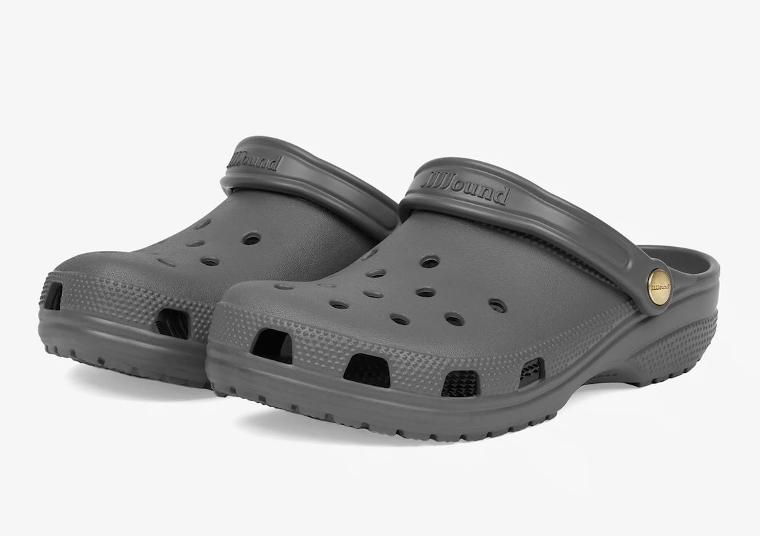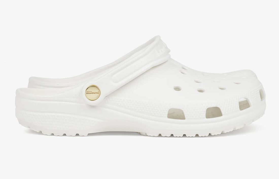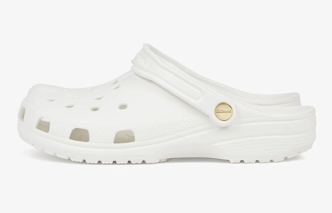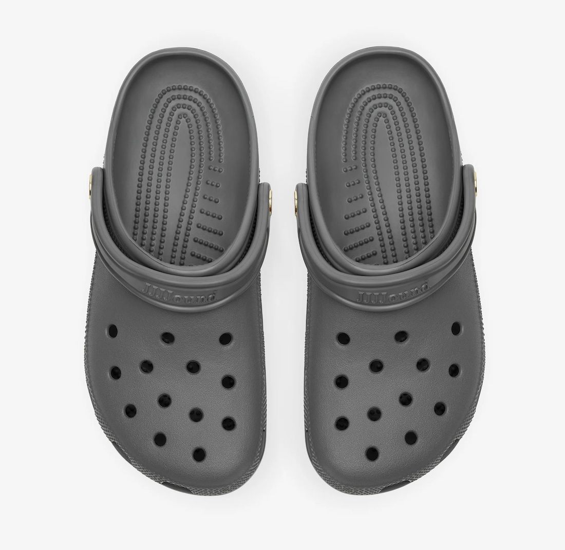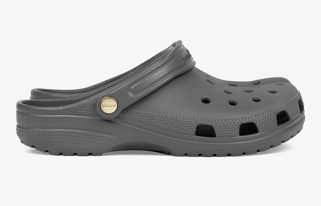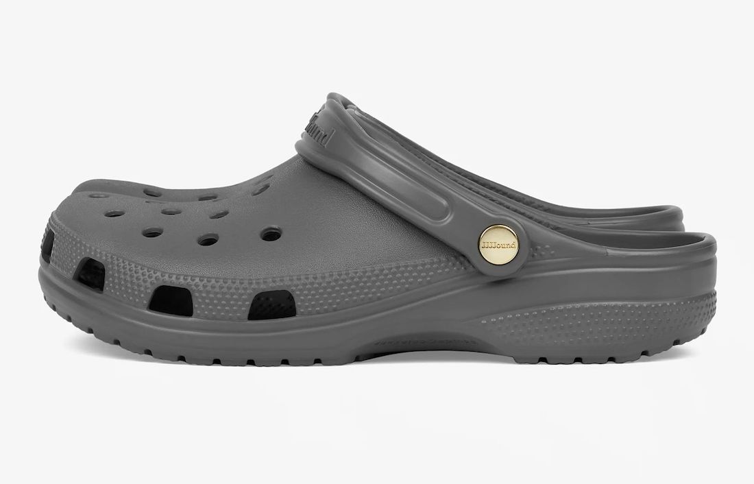 颇有一番球鞋圈黑话「金扣」的意思,不妨可以称之为「金扣」JJJJound x Crocs 联名洞洞鞋。