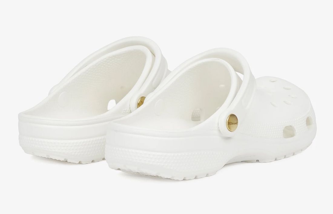 可以看出,两款鞋均以纯色呈现经典 Crocs Classic Clog,一款纯白一款深灰。