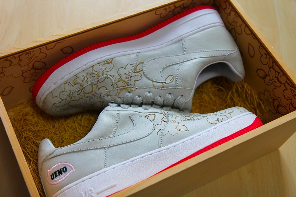 鞋带前端的金色鞋带扣,后跟 UENO 刺绣,以及专属打造的镭射樱花木质鞋盒,都彰显出极高的规格身份。