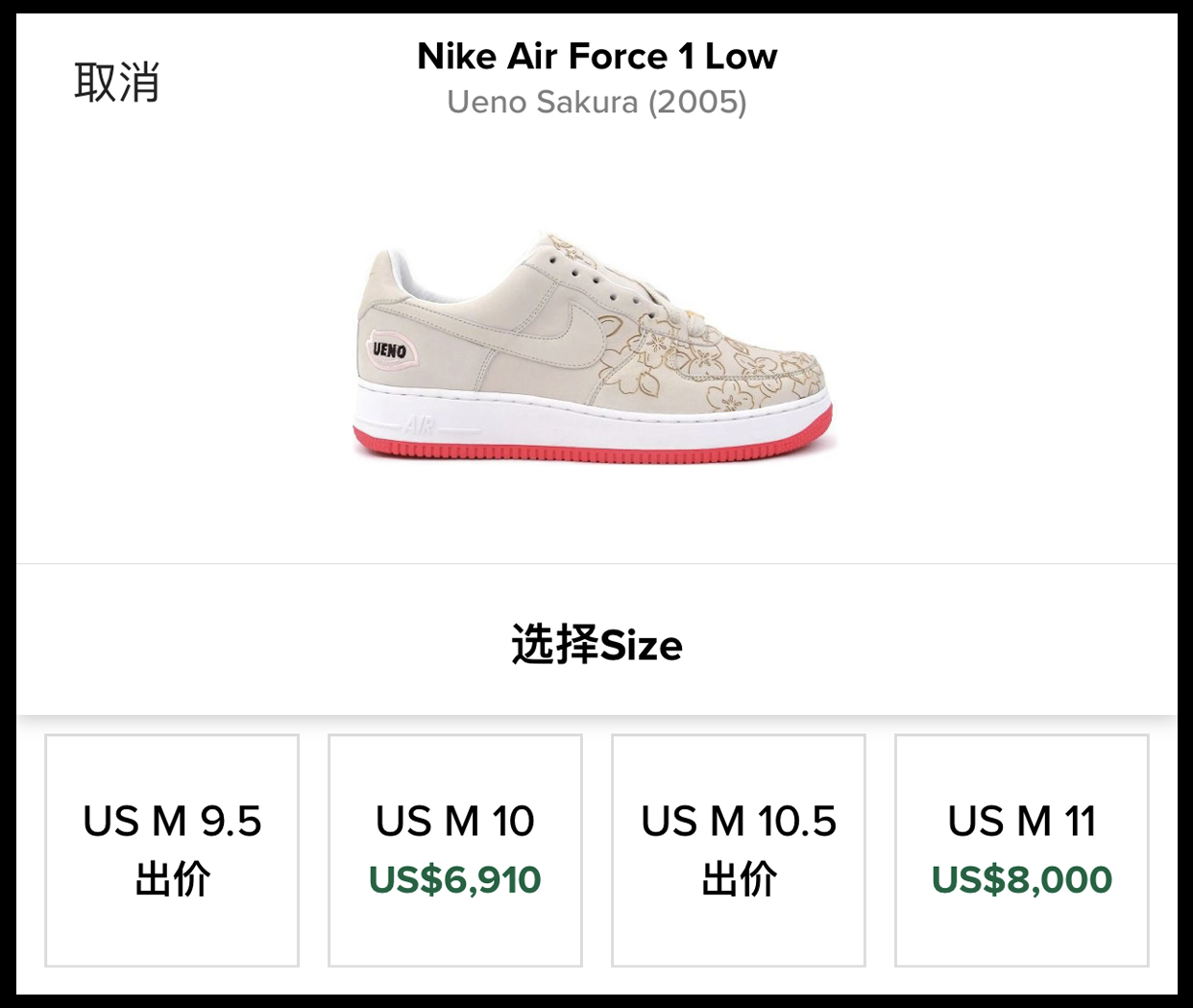 好在近期传出消息,这款 Nike Air Force 1 Low “Ueno SAKURA” 极有可能在明年回归!