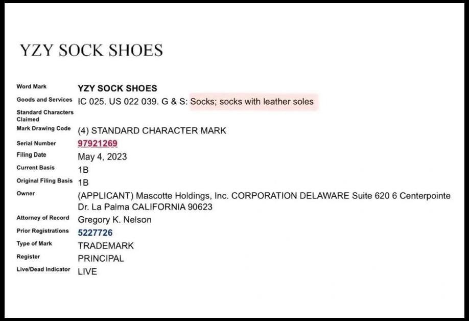 其实很早之前侃爷已经为袜子鞋注册了商标。