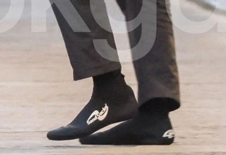 说回大家最关心的鞋款,都知道侃爷一直穿袜子鞋出街,这次泄露出更多细节。