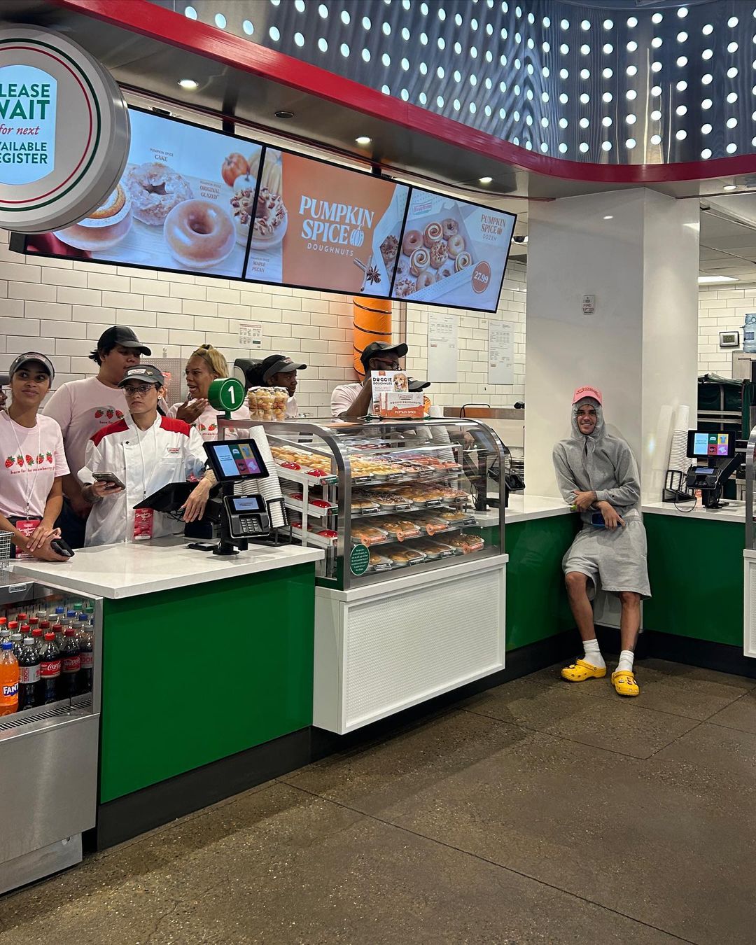 比伯社交平台的球鞋含量一直不高,大部分上脚都来自于街拍,最近却发现上脚了洞洞鞋。