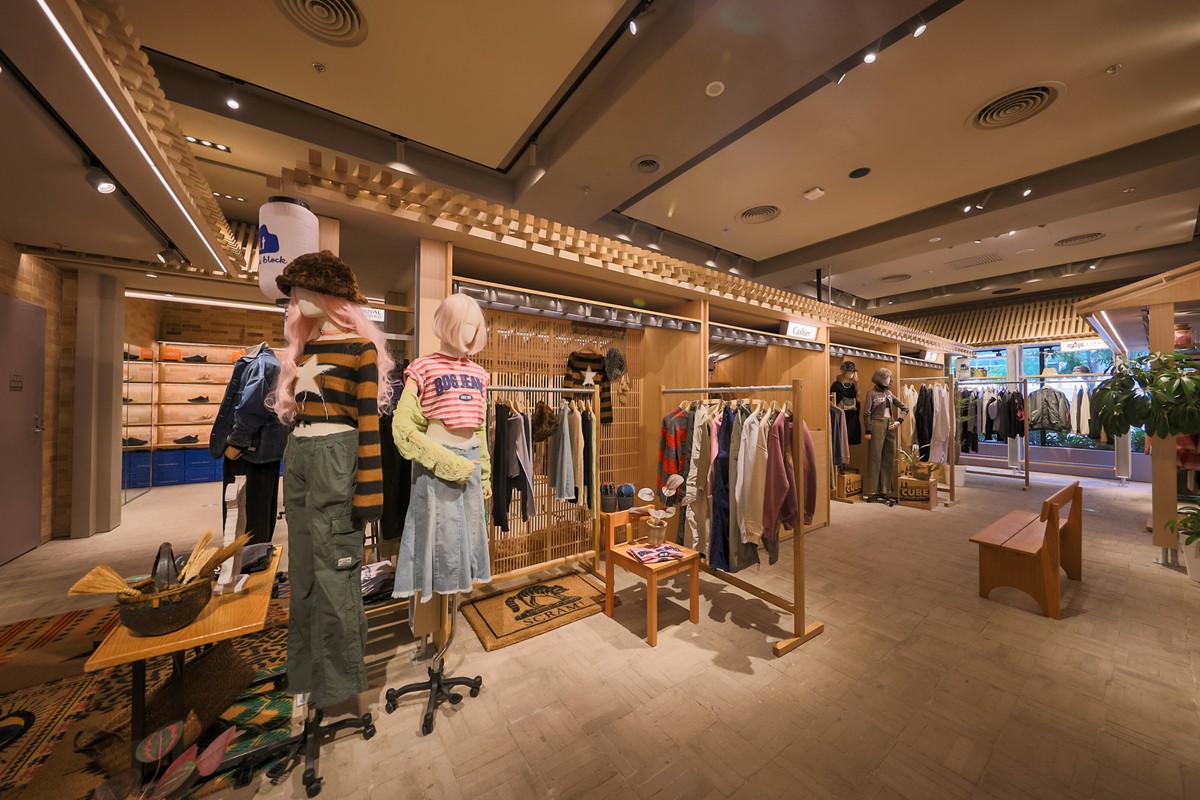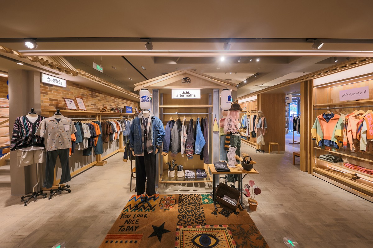 年轻多变的国潮 :CHOCOOLATE、FIVE CM,韩风的 STYLENANDA、LAP 与 COVERNAT,英伦风的 FRED PERRY,日系风 JOURNAL STANDARD , MURUA 与 EMODA,美式学院风 RUSSELL ATHLETIC,带有当下热潮的都市户外风的 DANTON、GRAMICCI、MANASTASH,长盛不衰的街头潮牌 OBEY、R.R.G.S,Aftermaths,风靡街头的 “小袋鼠” KANGOL,火遍全球的棒球帽品牌 NEW ERA 及潮流鞋区。女装 APEE、b+ab、ccaabb、free people 涵盖从运动 Y2K 风、轻淑风到波西米亚民族风,而男装 MUSIUM DIV.、ALPHA INDUSTRIES、fingercroxx 则为或爱好艺术、或偏心音乐、或中意工装等不同的男生提供标签化服装。