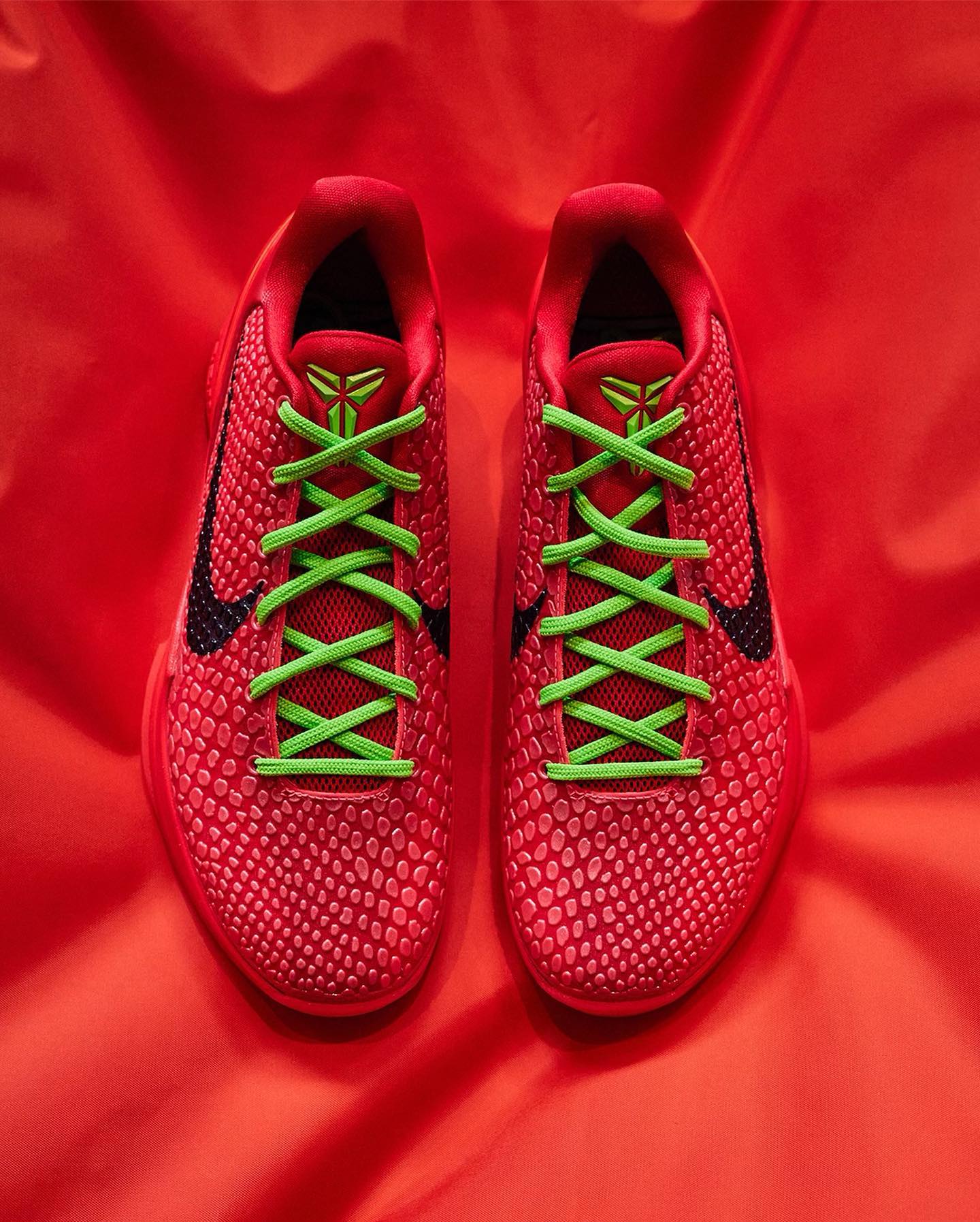 再来看看两双更为期待的球鞋,首先是「反转圣诞」Nike Kobe 6 Protro “Reverse Grinch”。