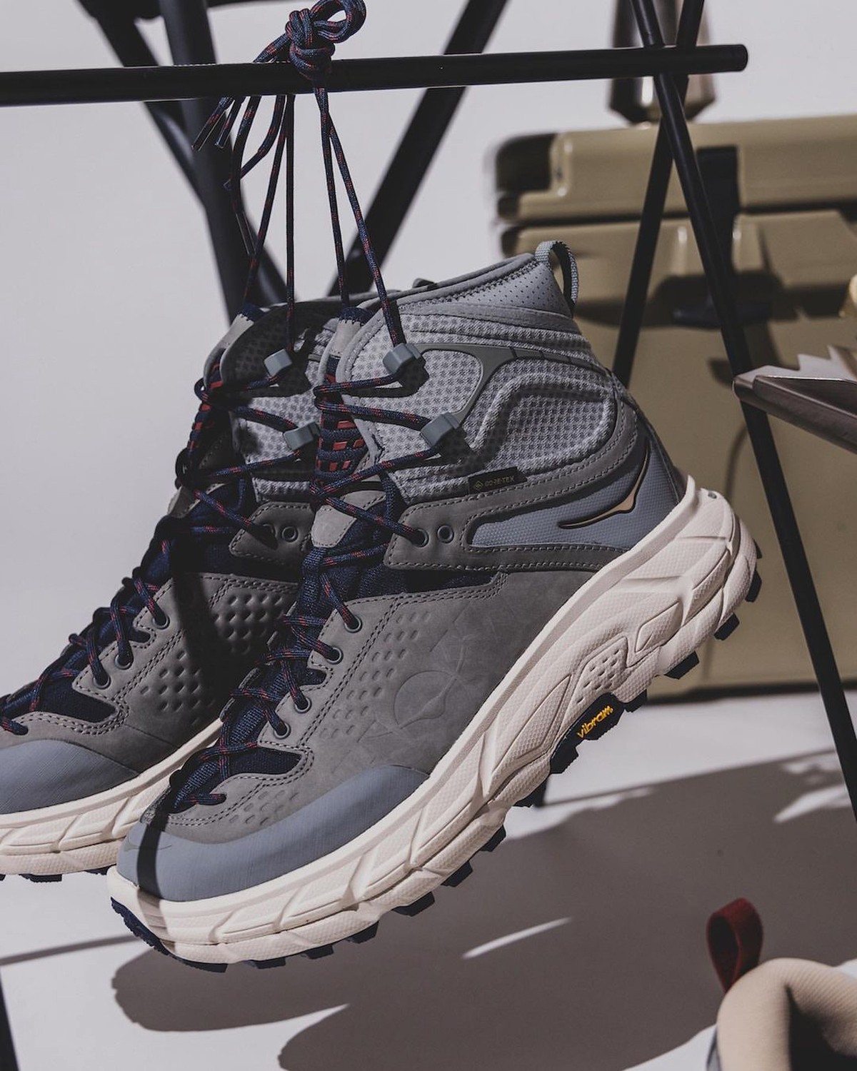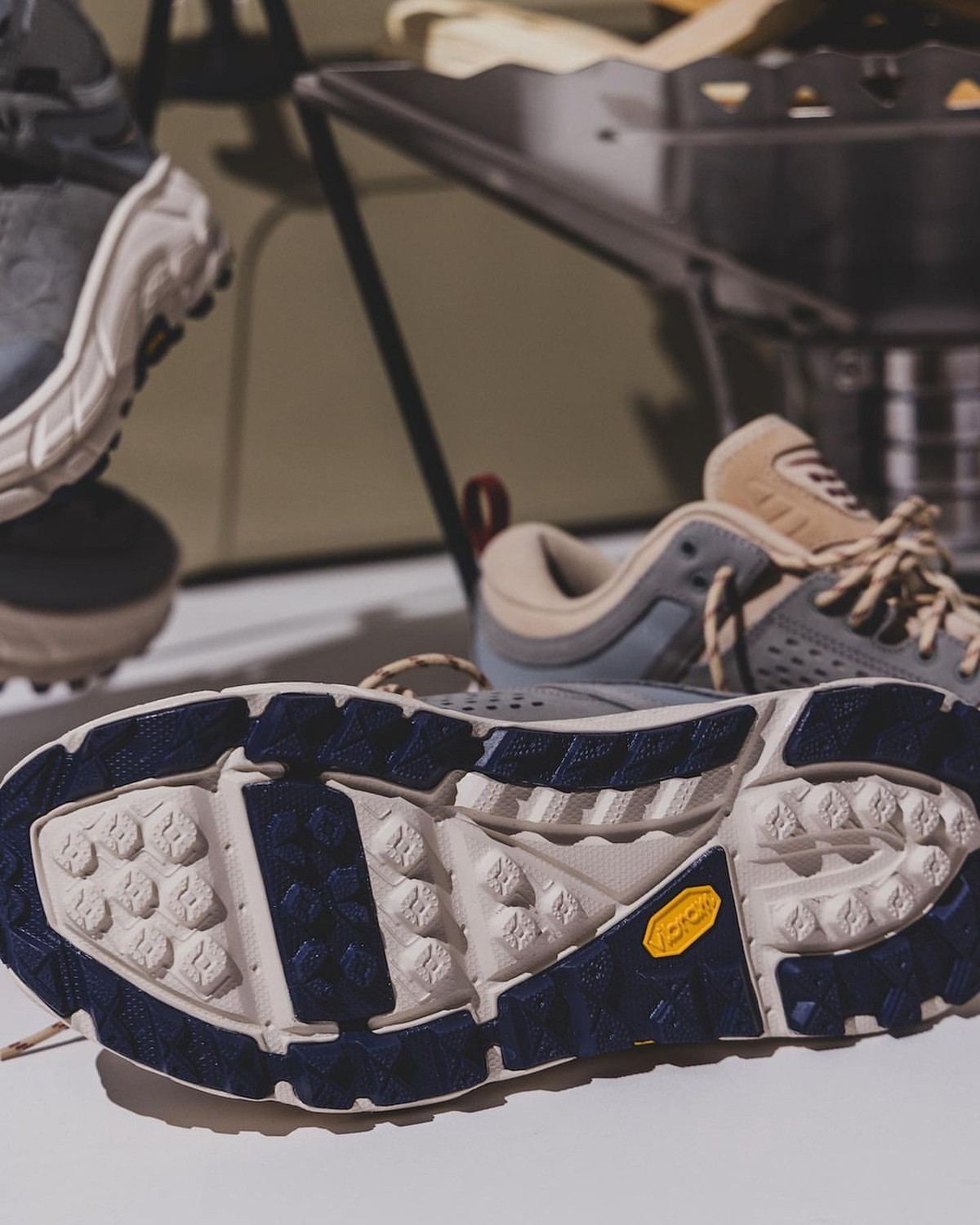 此次全新的 BEAMS x HOKA ONE ONE TOR ULTRA 同样推出了一高一低两个版本,水泥灰色的主调,不仅契合了日潮画风,更将自己的户外鞋血统尽显。