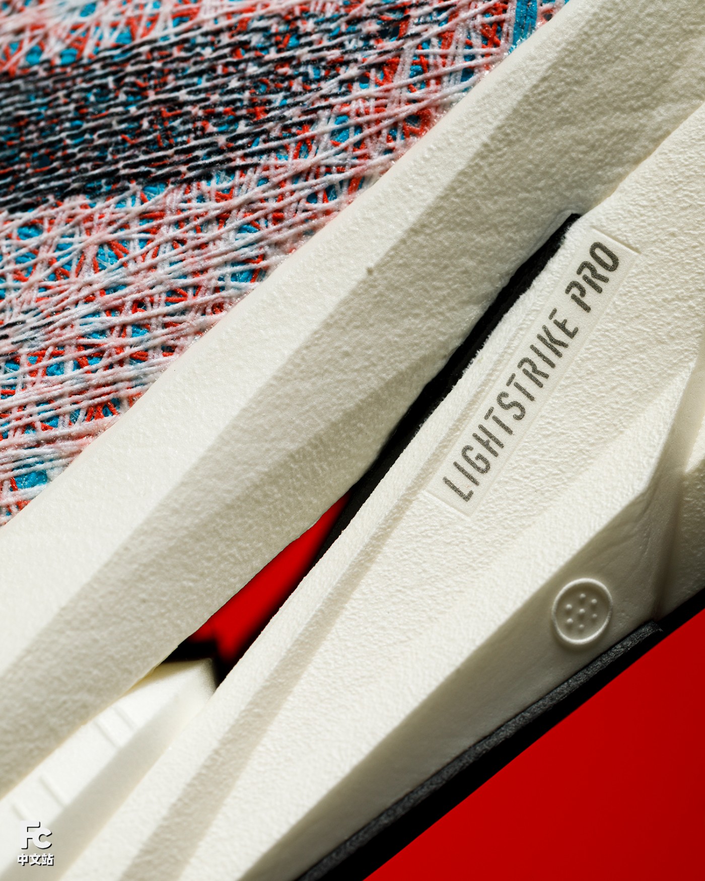采用全新设计的双层异形碳板,搭配三层 Lightstrike Pro 泡棉构建,妥妥的「巨无霸」配置。
