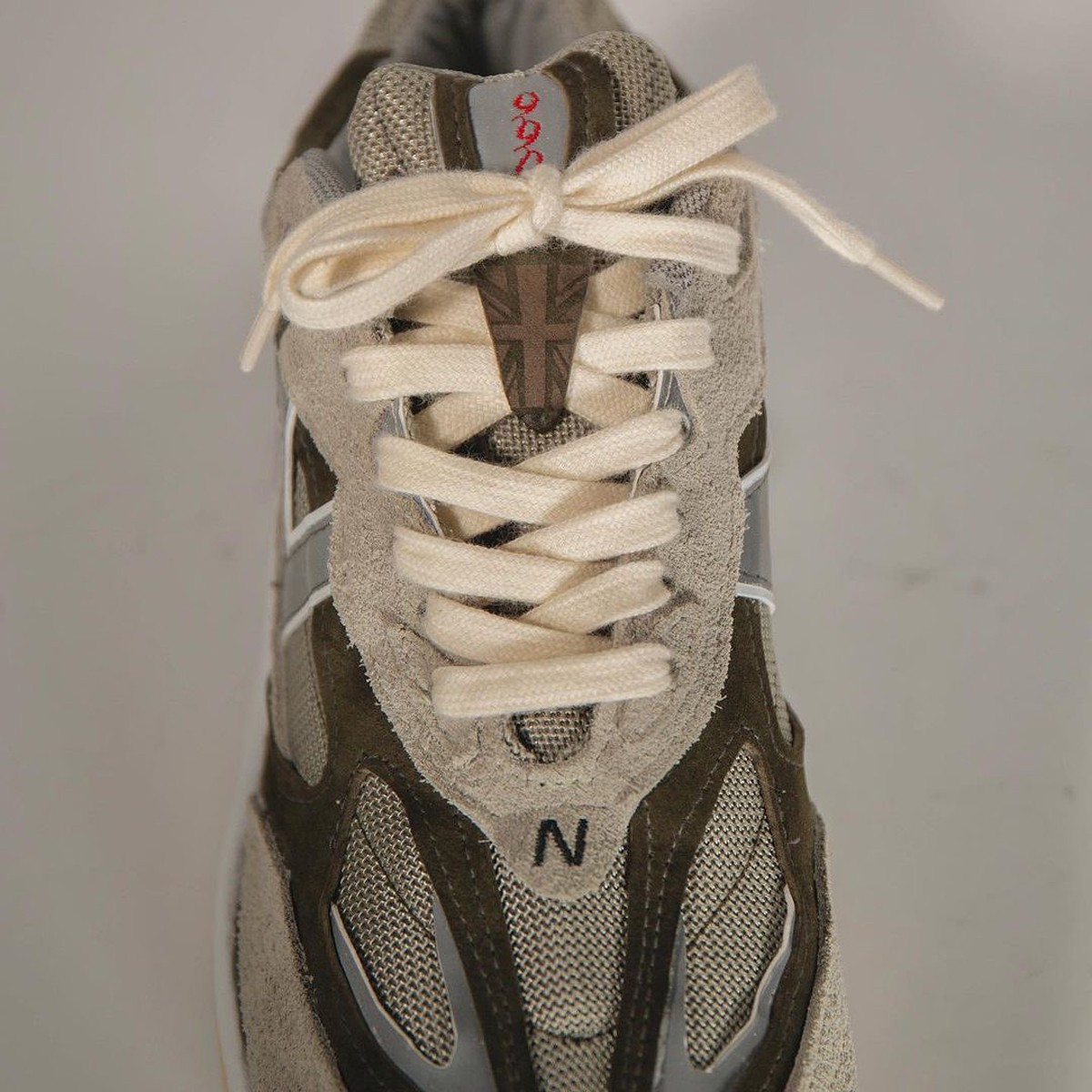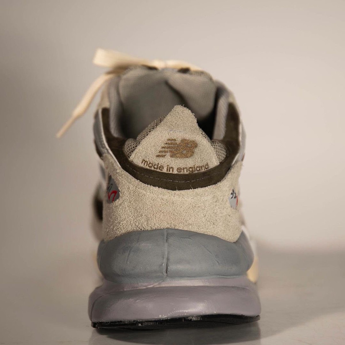 其余细节除了传统的 990v7 字样外,还在后跟及鞋舌印有代表着「英产」的标识。