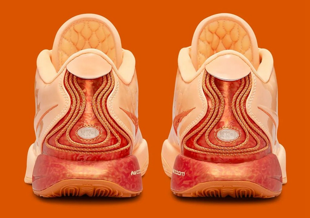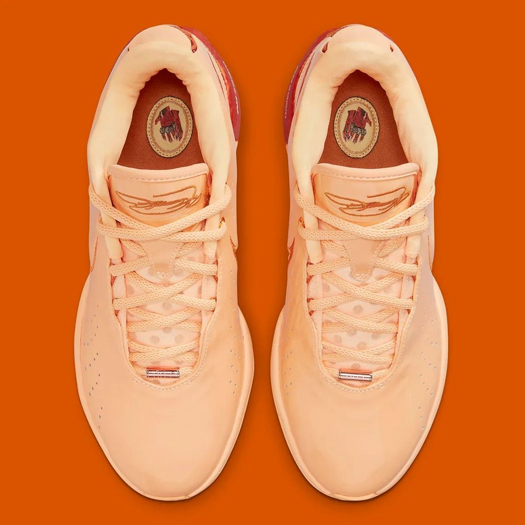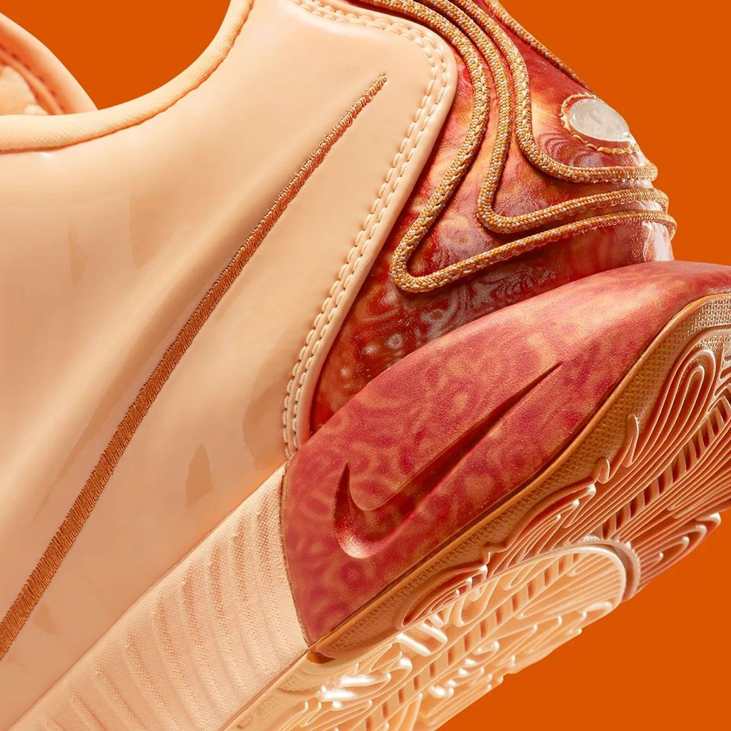 这 Nike LeBron 21 刚刚官宣没几天,一双接一双的新配色就开始陆续曝光。 近日,海外率先释出了一双橙色 LeBron 21 的官图。 覆盖鞋面的颜色有点类似蜜瓜果肉的感觉,视觉感受非常柔和。 后跟部分做出了变化,将橙红色和牡蛎壳的纹理相结合,形成熔岩般的既视感。 鞋垫上的两个 Patch 上绣着詹姆斯戴上四个总冠军戒指的手。 目前,这双新配色 Nike LeBron 21 尚无具体发售信息释出,不知道你能给这双鞋打几分呢?