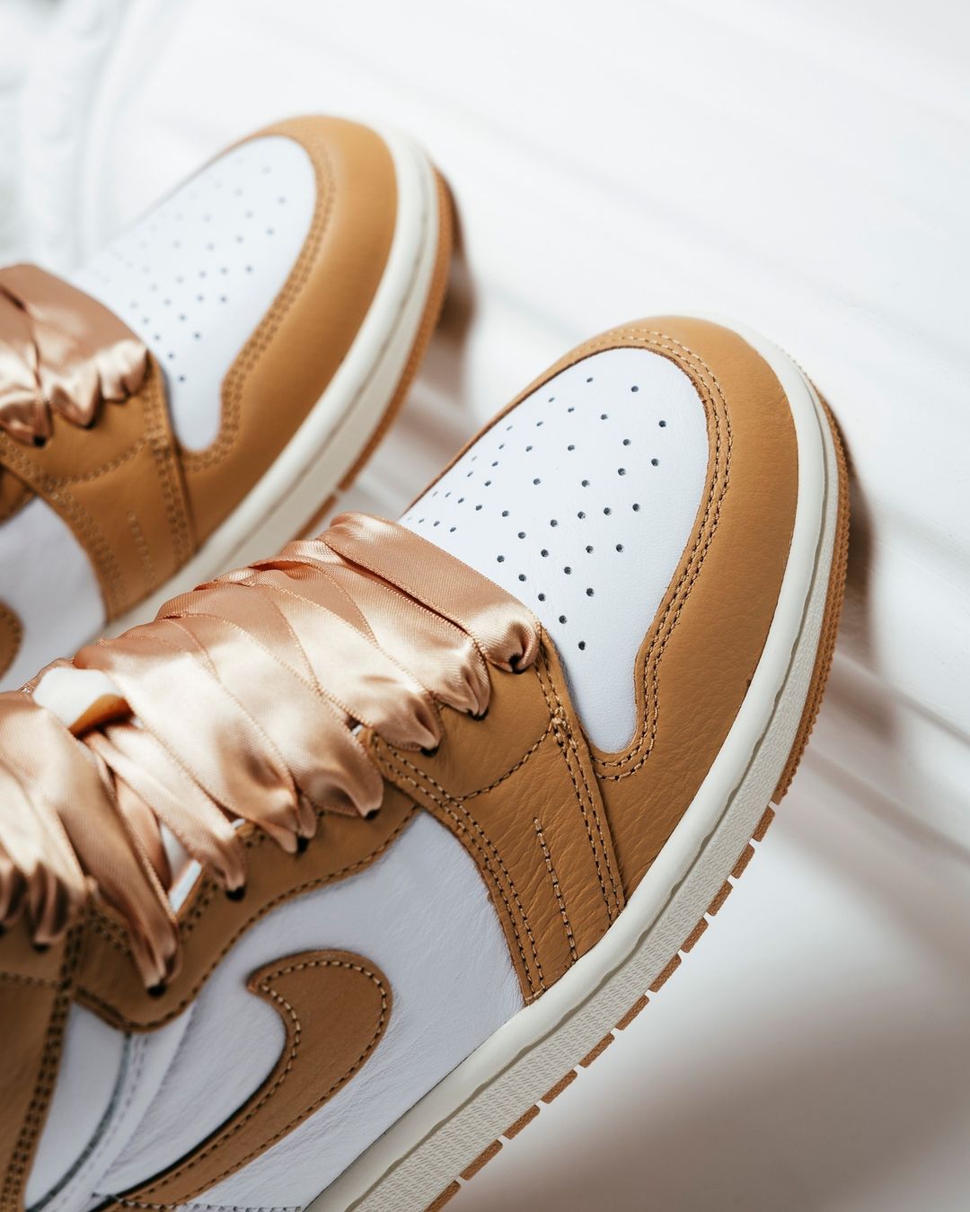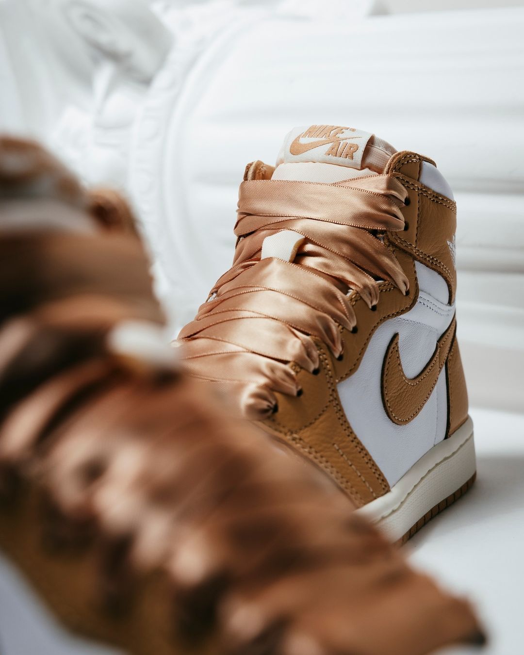 前段时间登场的 Air Jordan 1 High OG “Praline” 虽然是 WMNS 规格,但尺码依然覆盖到 44.5。 最近,迎来全新美图曝光,还没入手的小伙伴不妨欣赏一波。 不仅是极具 OG 气质的九孔鞋型,鞋身细节同样没有改动。 鞋身白、棕双色装扮,颇有秋日氛围。 点睛之笔则是丝绸质感的鞋带,这规格太适合小姐姐上脚了。 该鞋款现已正式登场,市价目前在 ¥9xx 元左右。 Pic via:sneakerpolitics