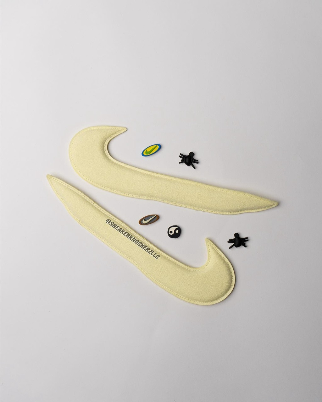除了魔术贴材质的 Swoosh 外,还有能粘在鞋上的小装饰,包括 CPFM 经典的阴阳图等等。