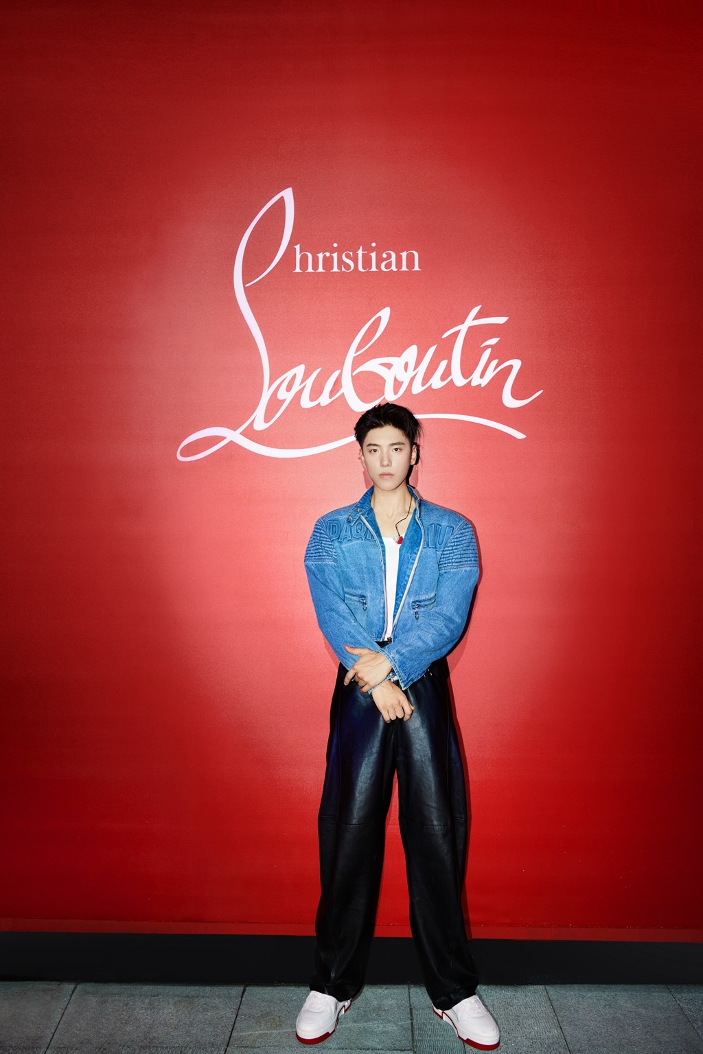 王子异身着经典红白配色 Astroloubi 男士运动鞋,轻质结构与铆钉装饰集休闲与时尚于一身。