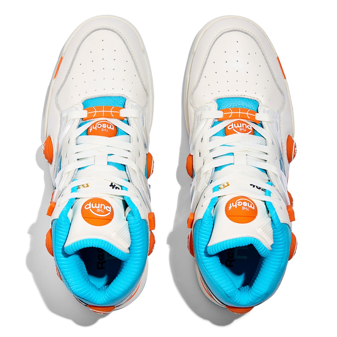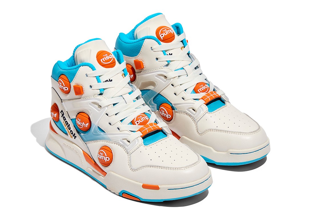 而特别之处在于,MSCHF 将 Reebok 经典的 Instapump Fury 充气按钮附着在了鞋身各处,且分别写有 Pump 和 MSCHF 字样,彰显联名身份。