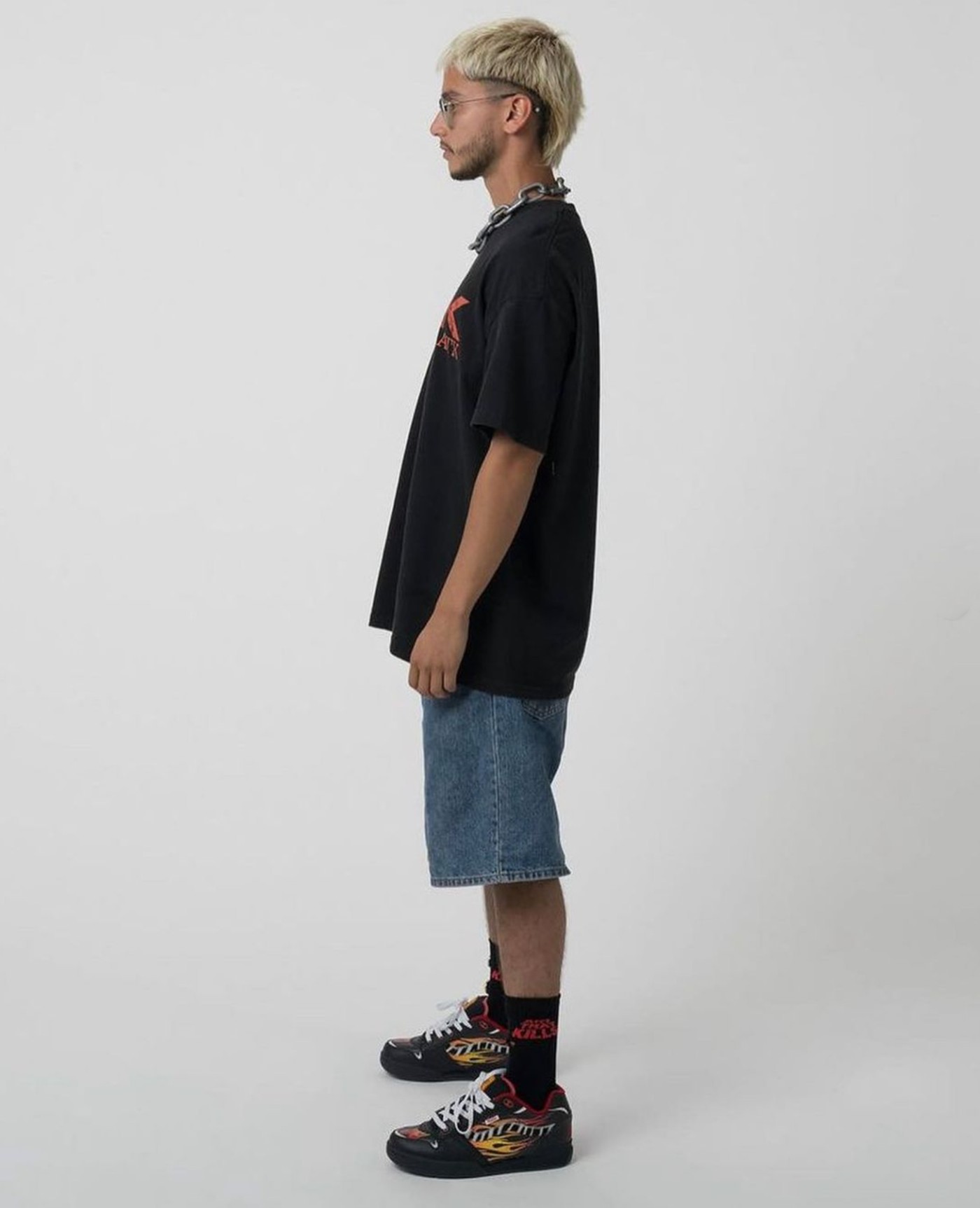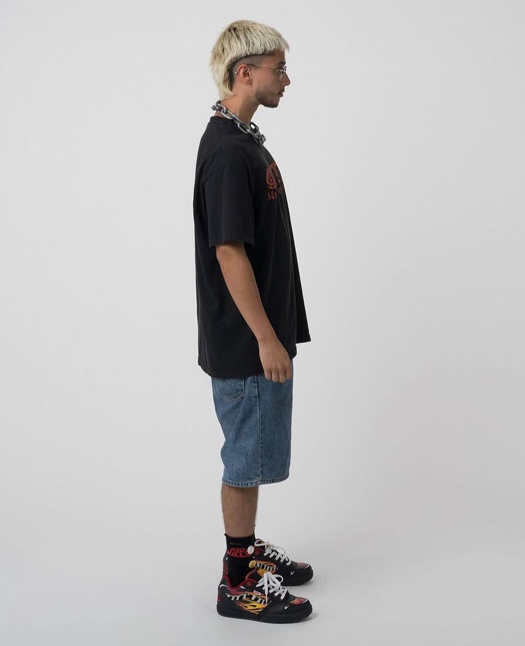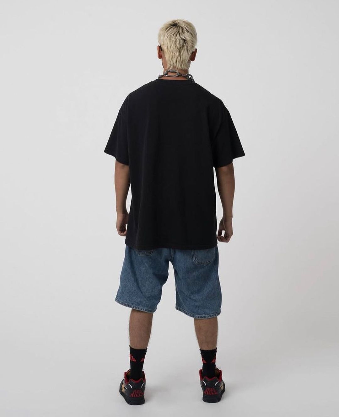 搭配上可以向老牌板仔学习,选择一条牛仔短裤或肥大牛仔长裤,呈现出当下大火的街头气质。