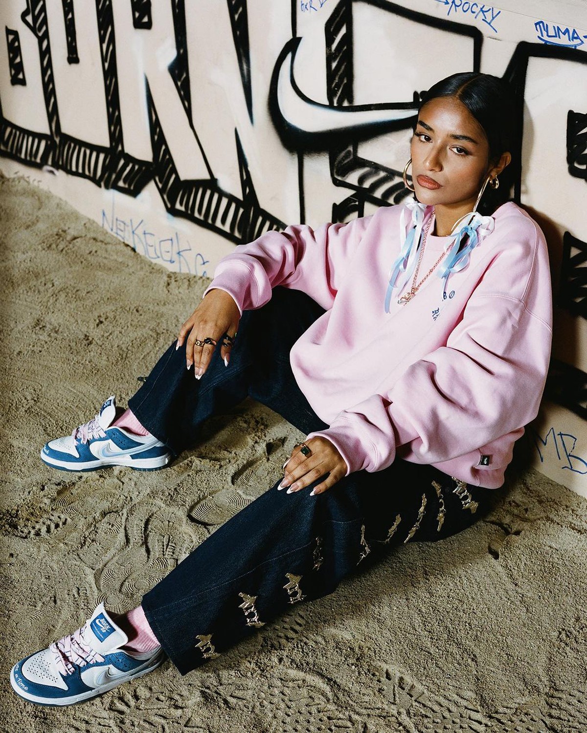 全新的 Born x Raised x Nike SB Dunk Low 以白色荔枝纹皮革和蓝色麂皮组成,醒目且颇具质感。