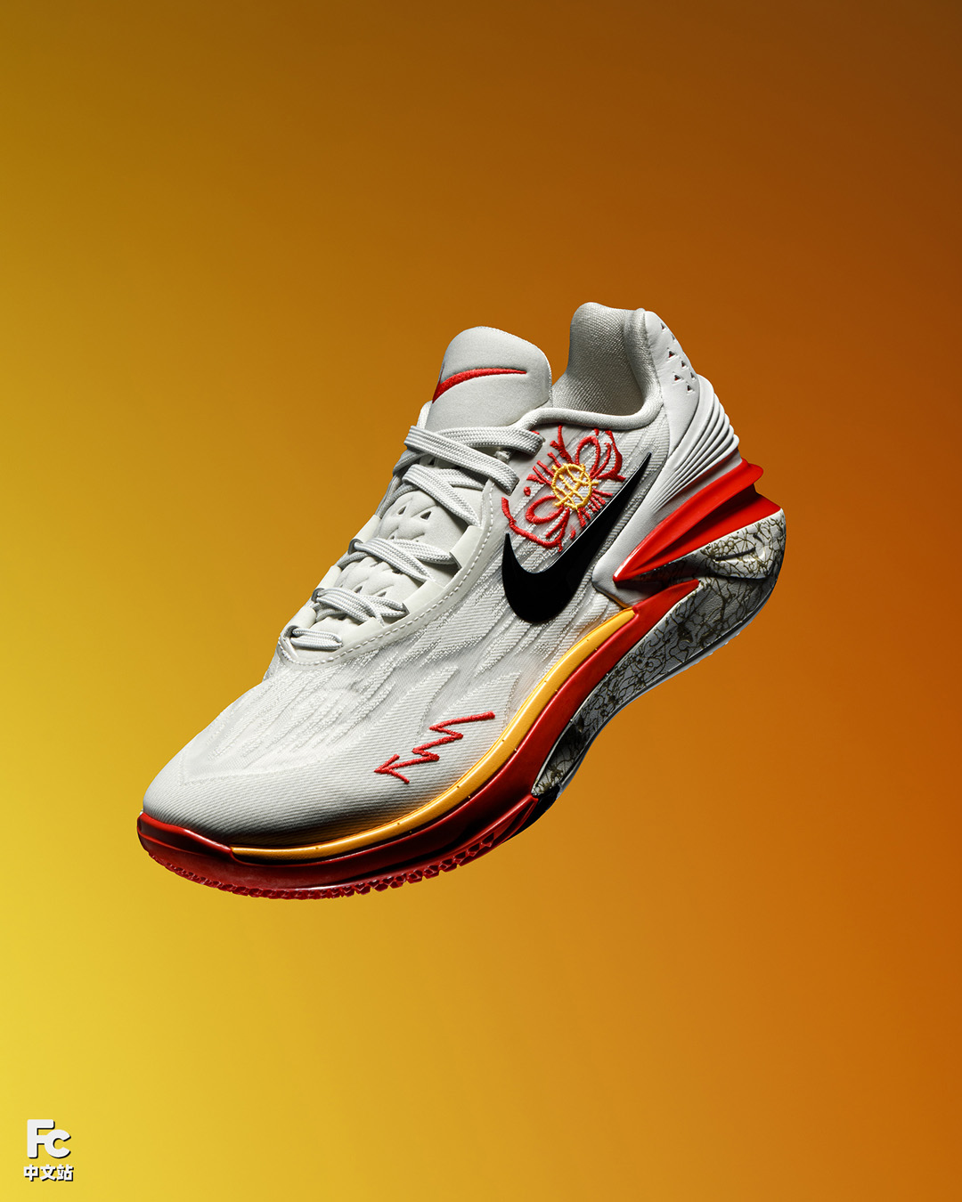 咱们首先从 Nike G.T. Cut 2 看起,作为中国队专属配色,再加上主场作战,因此鞋面以白色为主基调,细节部分则融入五星红旗的红、黄双色。