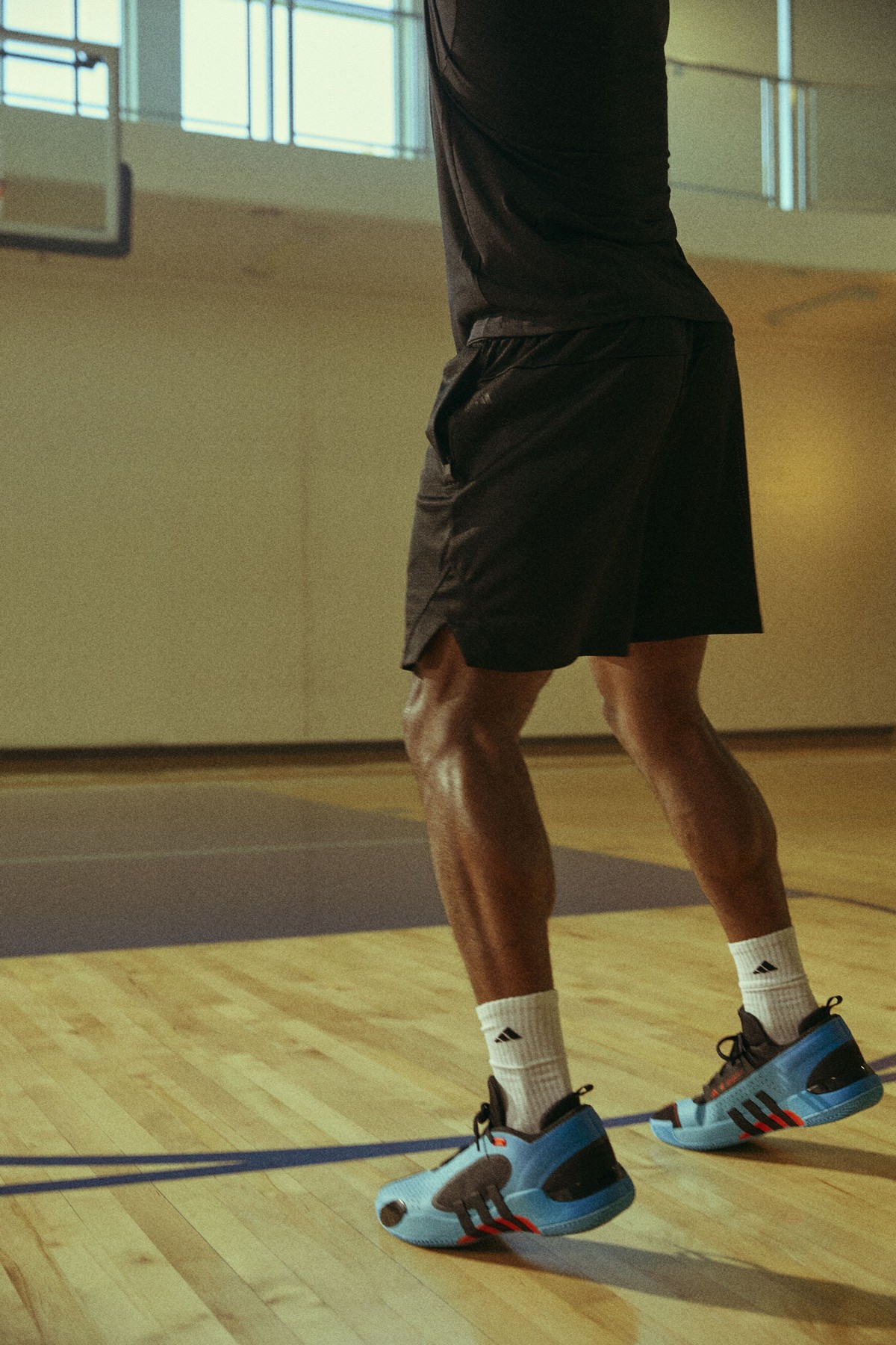 整体外形与此前曝光版本一致,前低后高的流线型鞋身,简约却不失硬朗气质,非常契合时下 adidas Basketball 的风格。