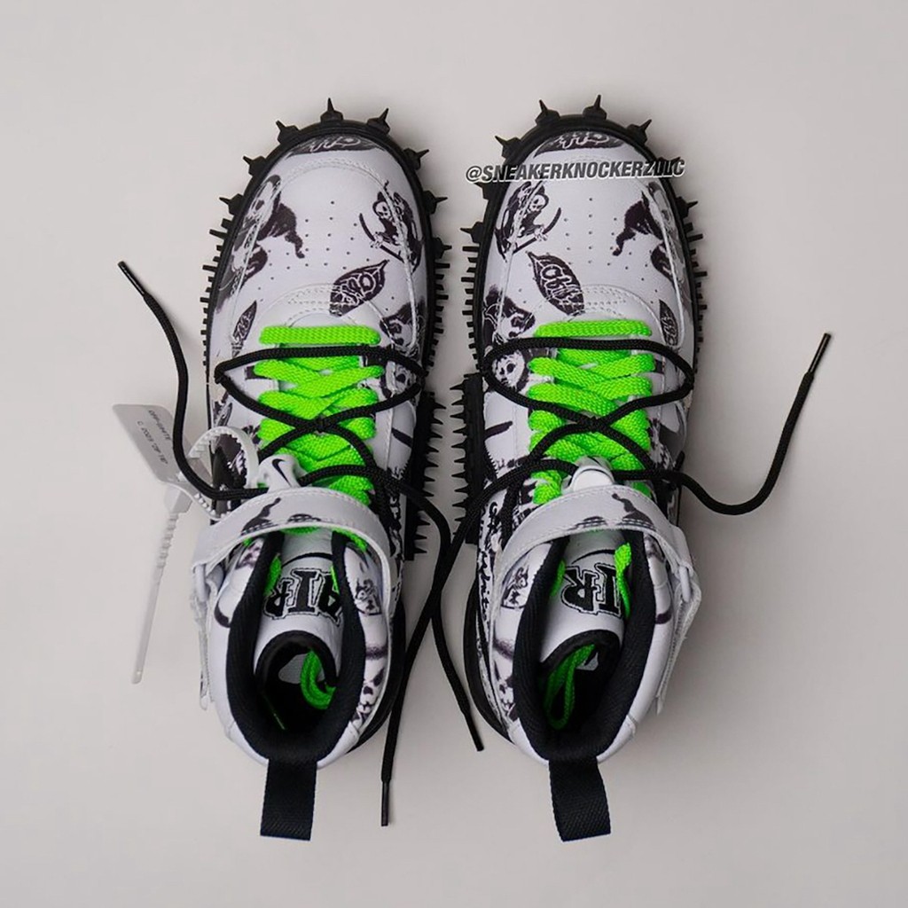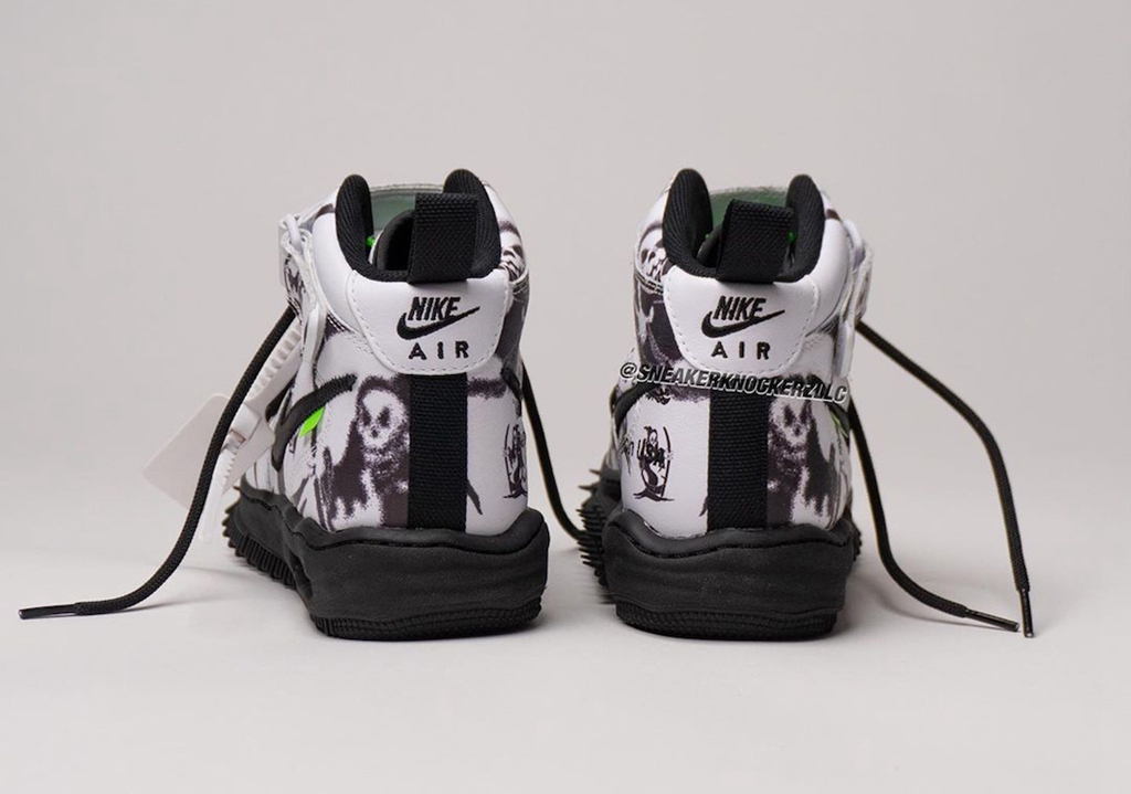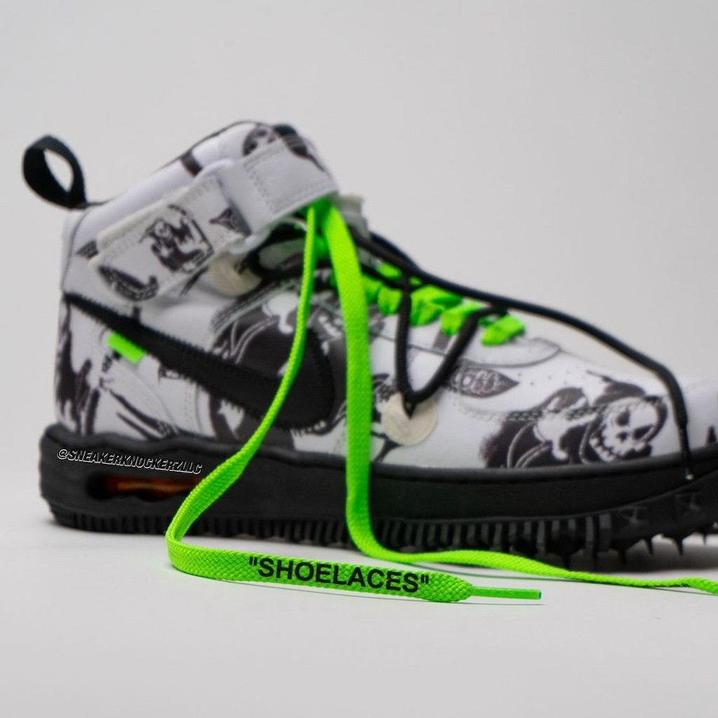 鞋型上和此前市售过的 OFF-WHITE x Nike Air Force 1 Mid 一致,主要变化在于鞋身图案设计。