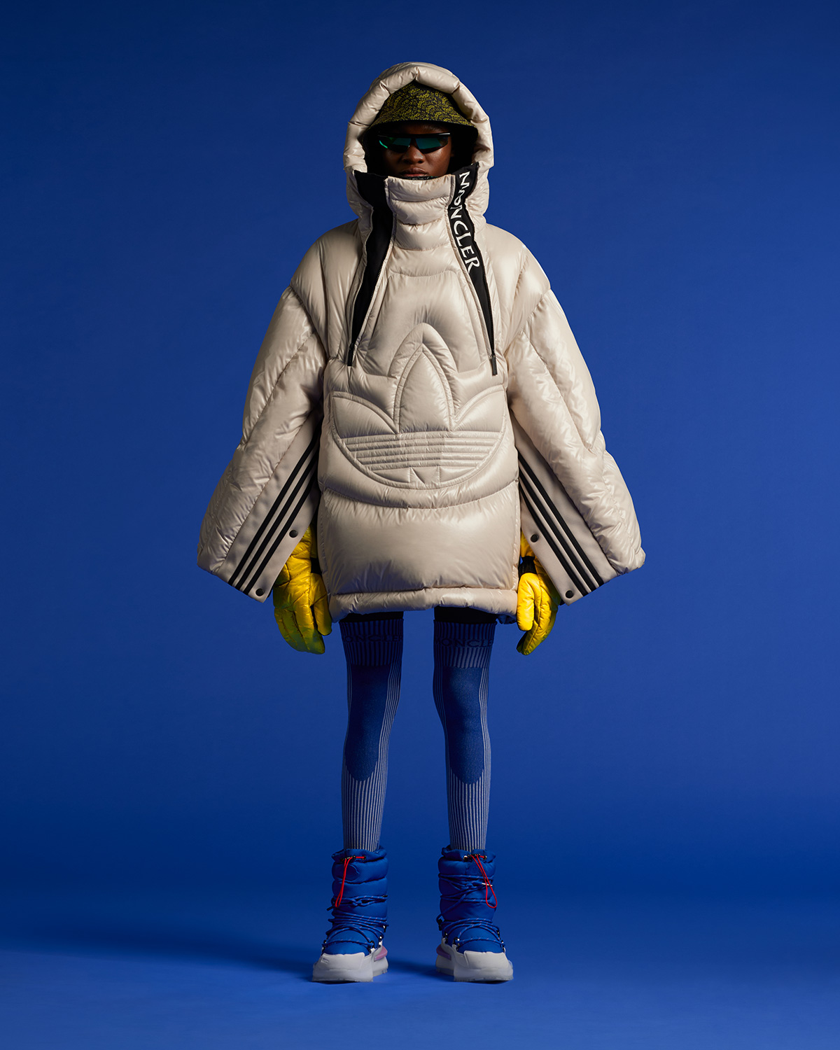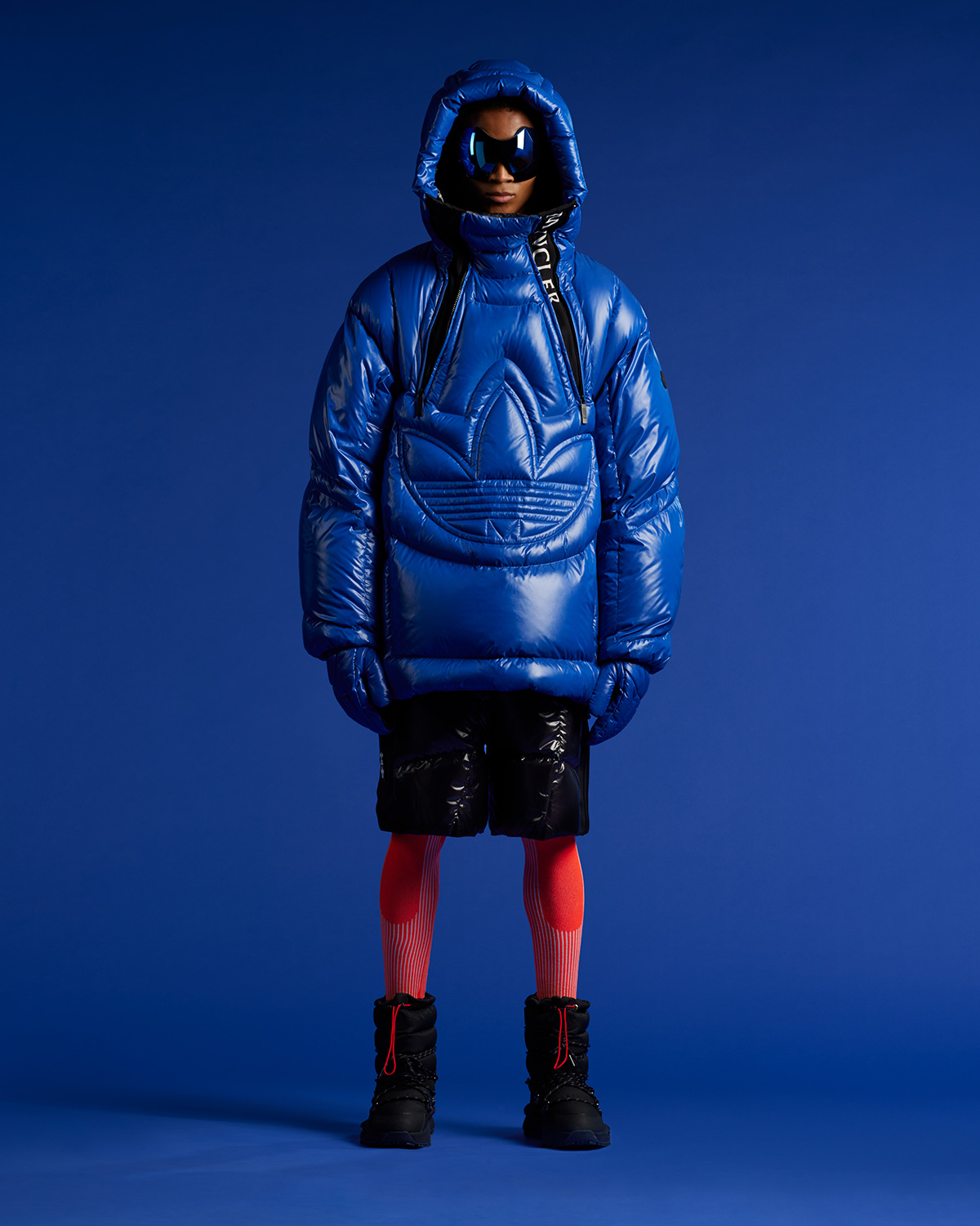 既有 Campus、NMD 等三叶草经典鞋型,视觉效果夸张醒目的羽绒服自然是重中之重。