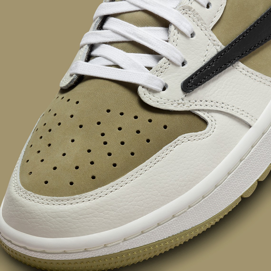 外底则是为高尔夫草坪所打造的特别纹理,同传统的 Air Jordan 1 外底有所不同。