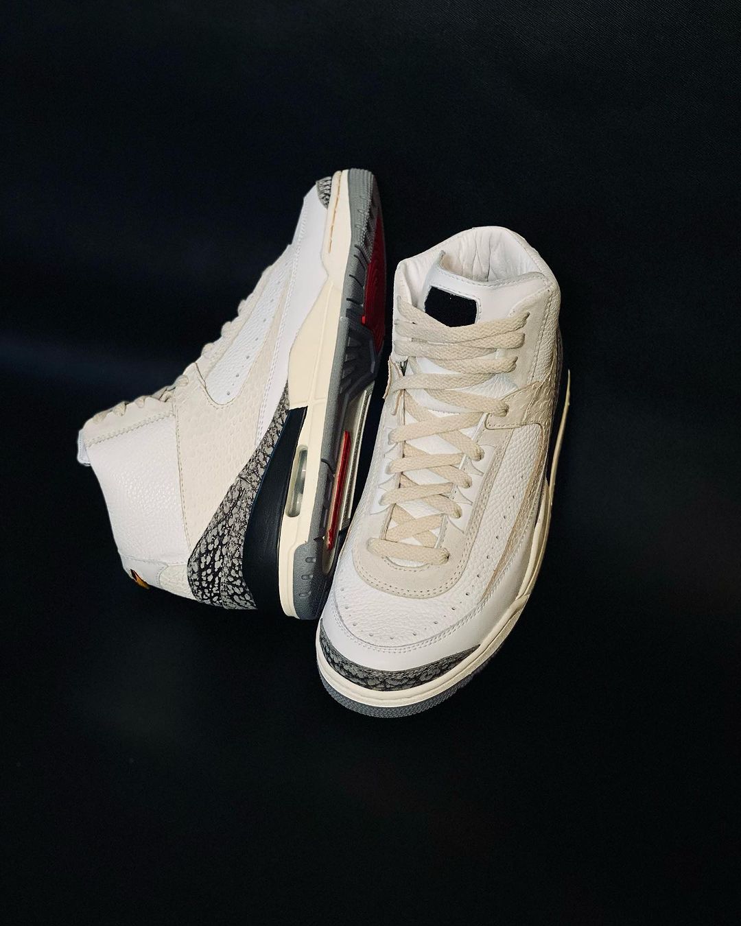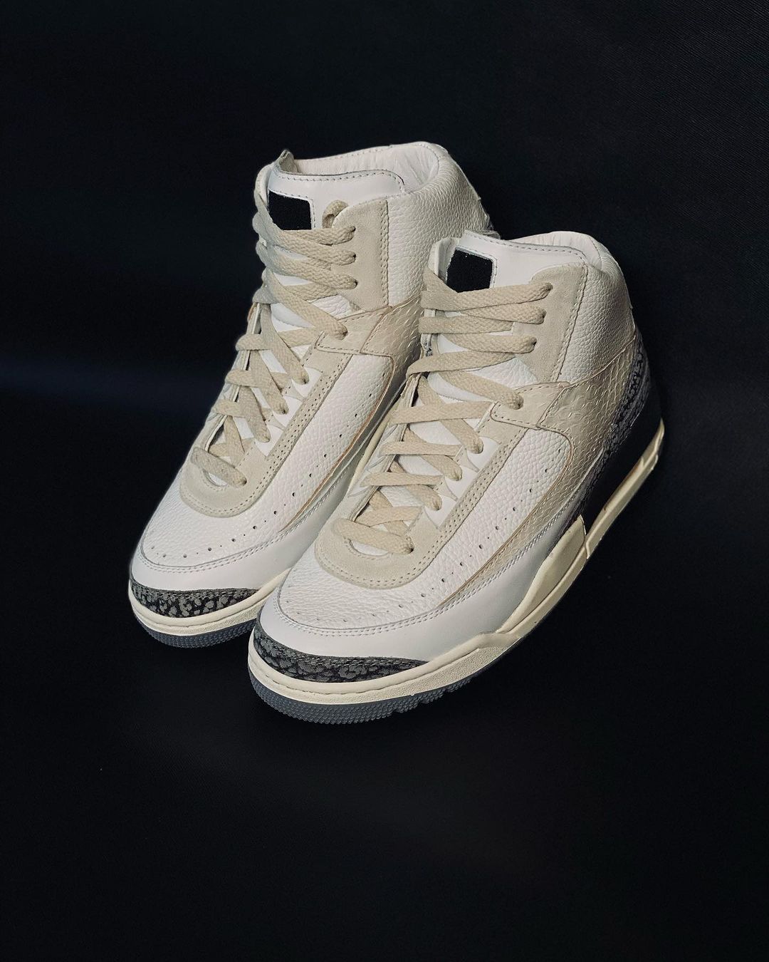 鞋面采用 Air Jordan 2 为基础,中底及外底则换成了 Air Jordan 3 模样。
