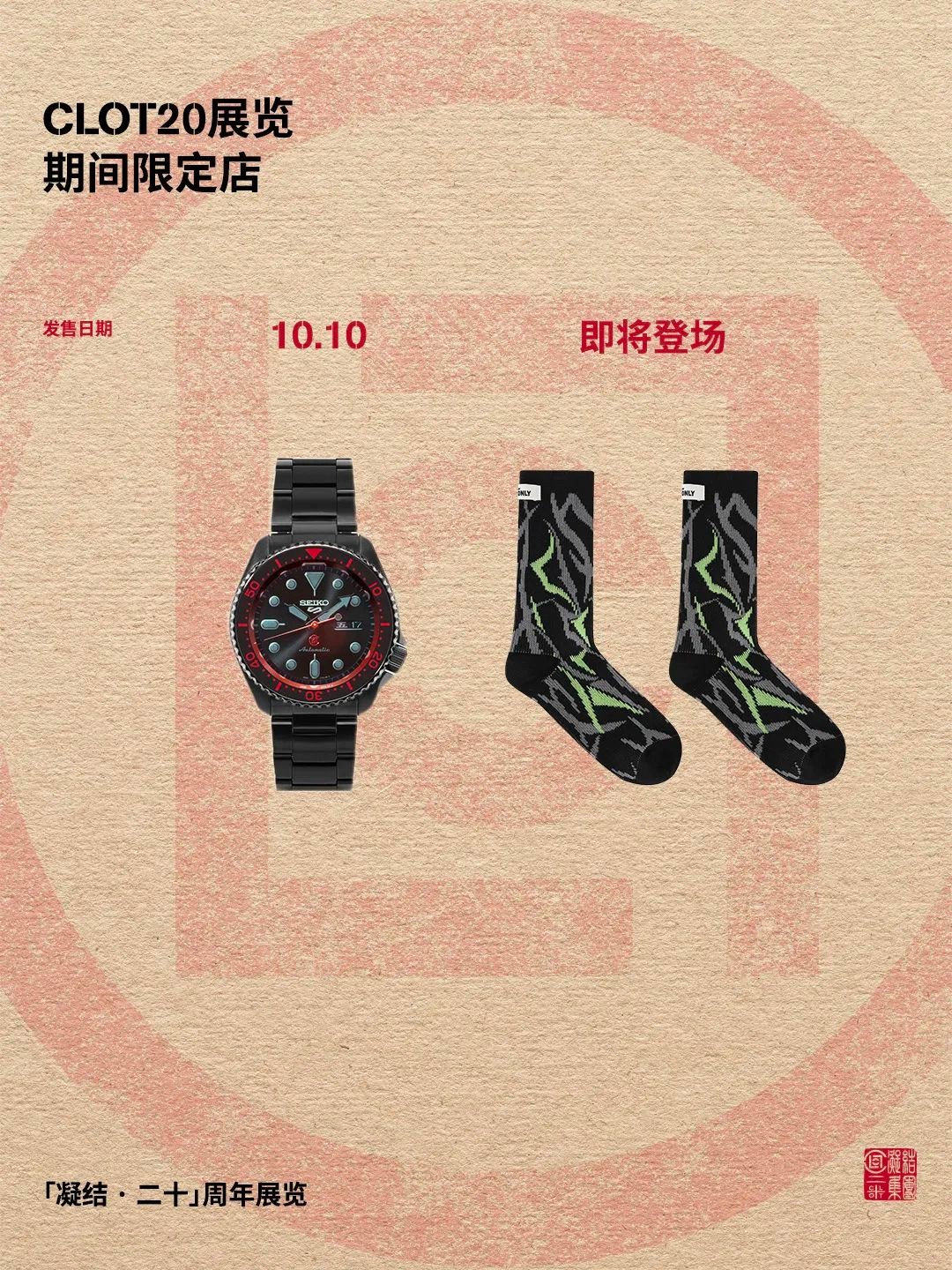 包括 CLOT x SEIKO 5 SPORTS 限量腕表以及 CLOT20 STAFFONLY EGRA 荆棘袜子。