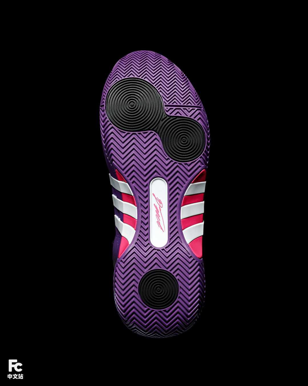 说到 D.O.N. Issue #5 最大的特征,想必就是纵贯中底的三道杠 TPU 了,adidas 巧妙利用三道杠融入进鞋身结构内,实现了造型和功能性的兼顾。